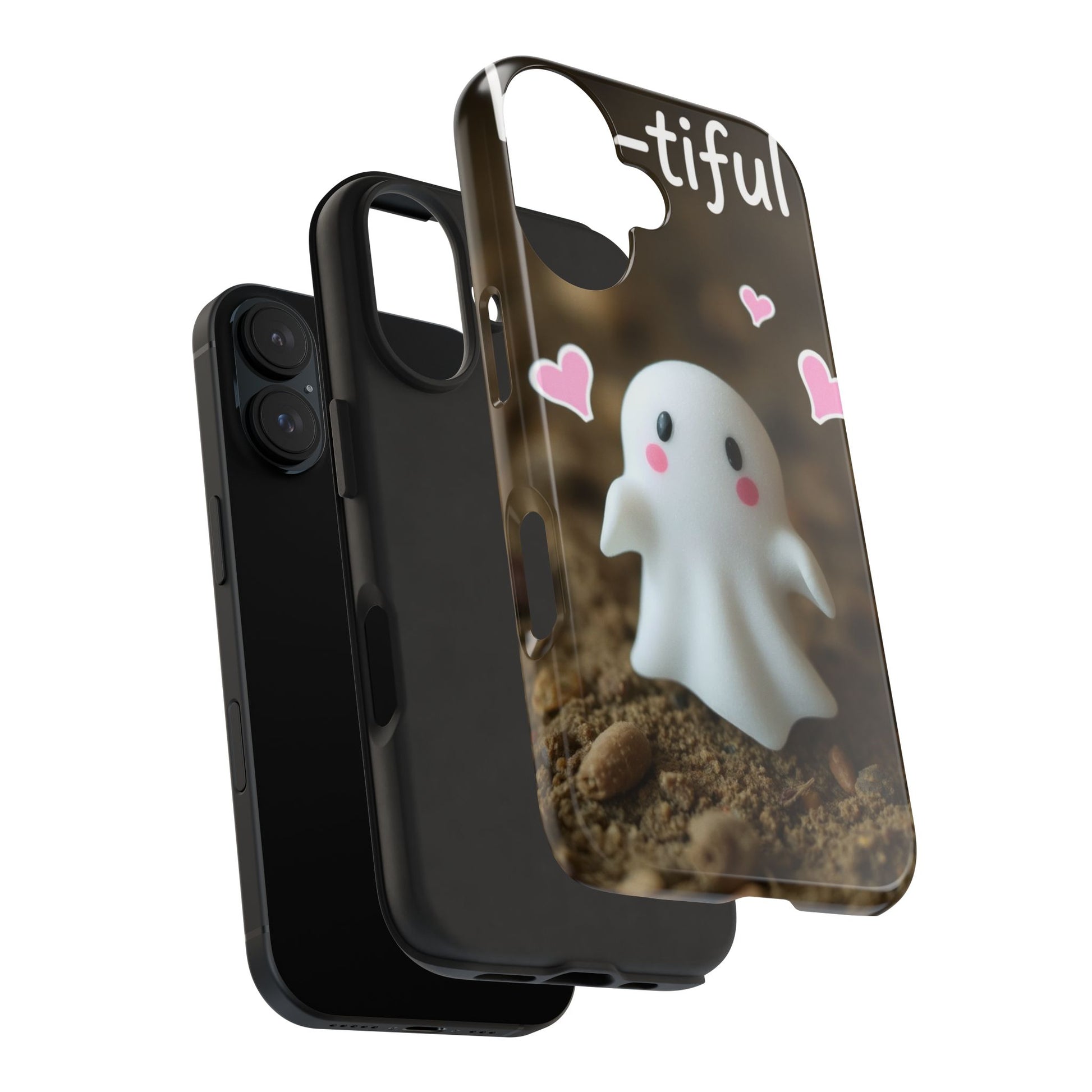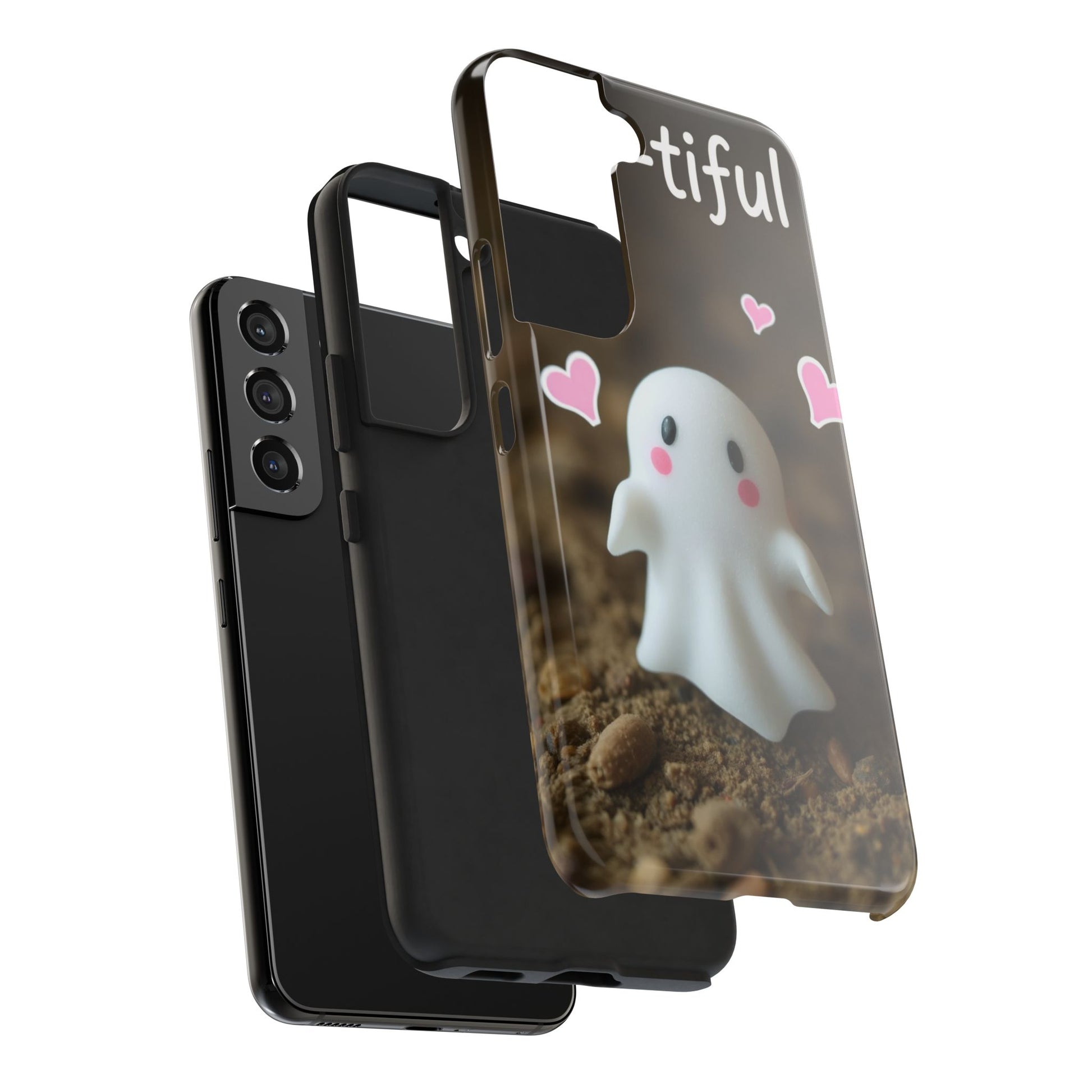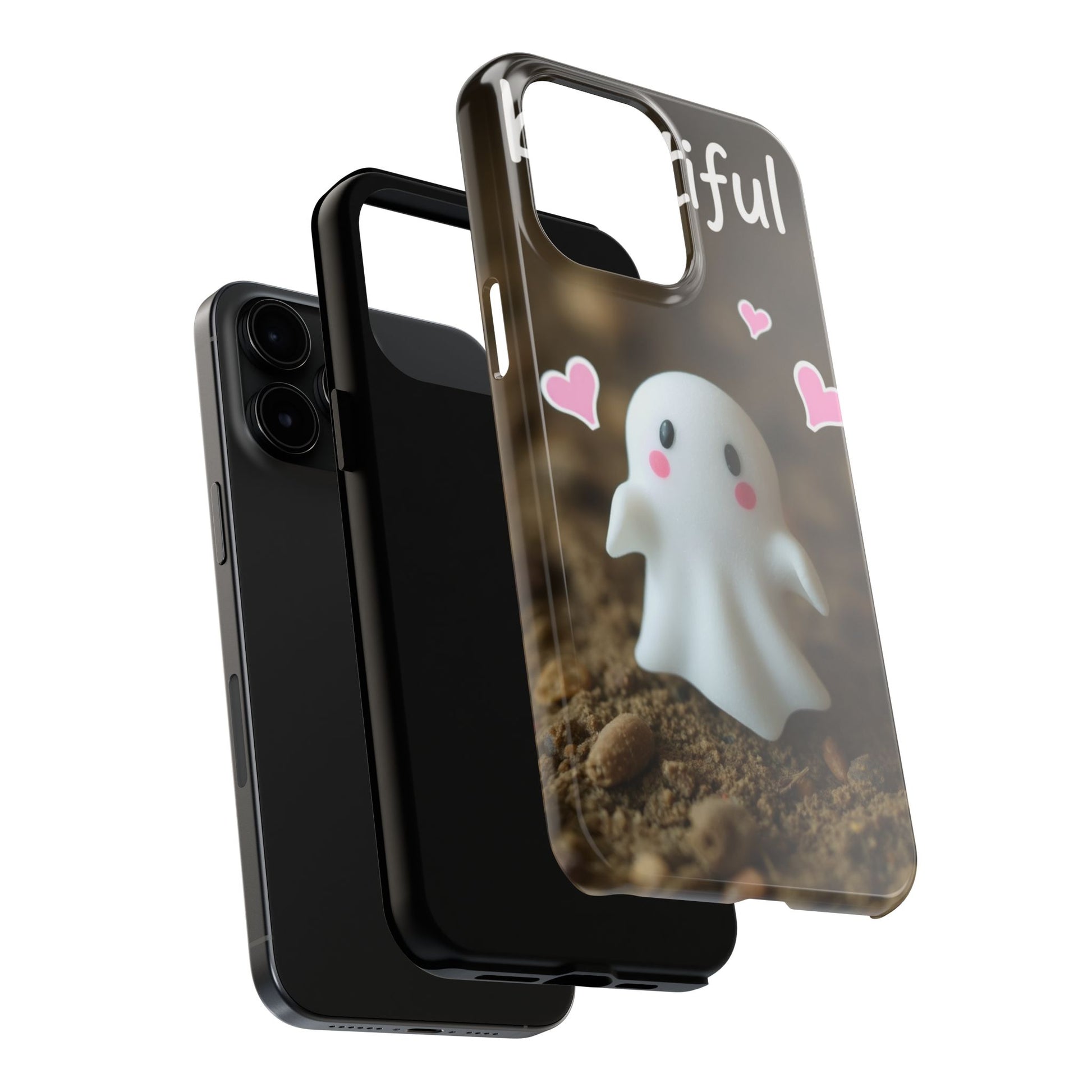 Cute Ghost Tough Phone Case - Beautiful Design with Heart Accents