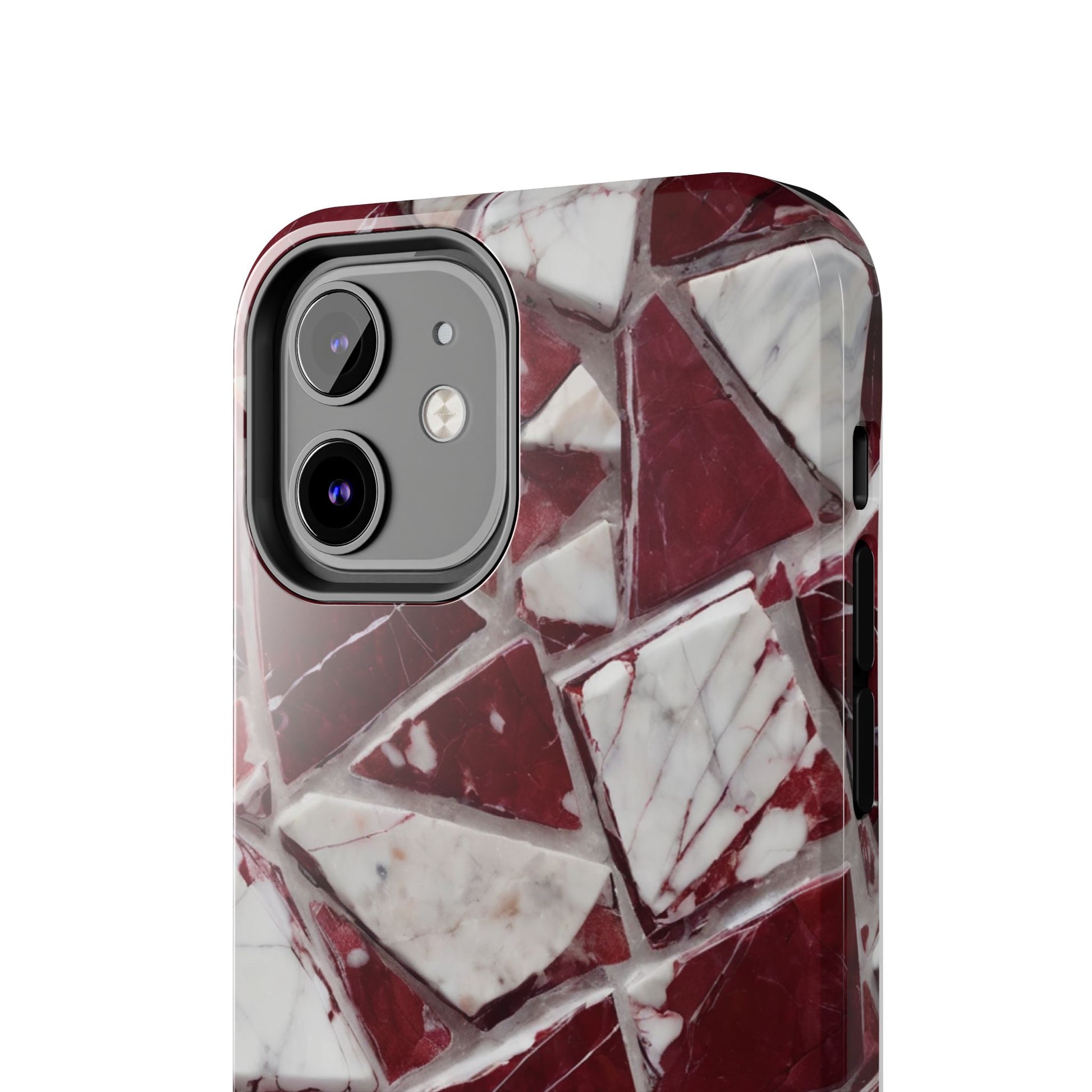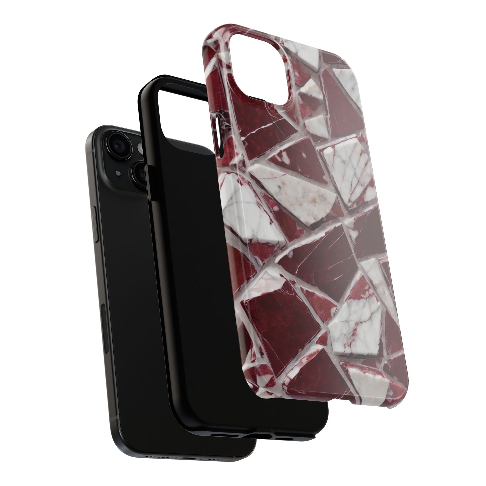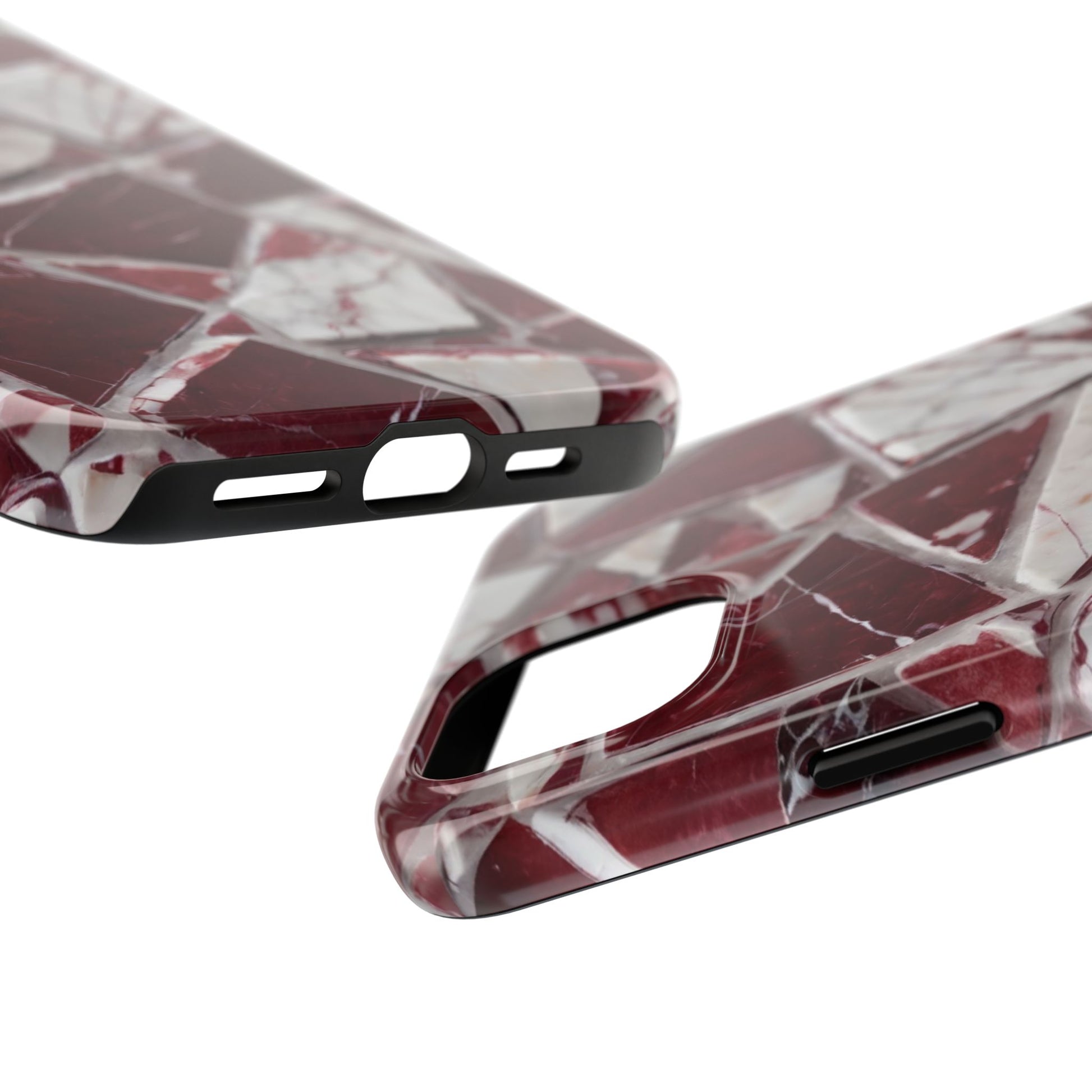 Elegant Red Pieces Marble Pattern Tough Phone Case - Stylish Protection for iPhone