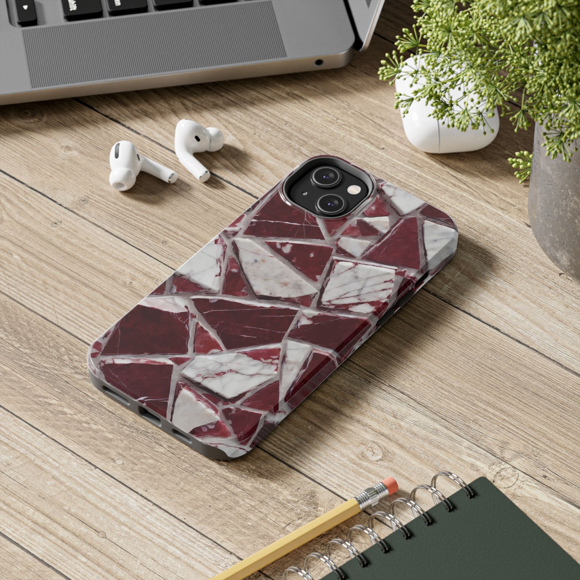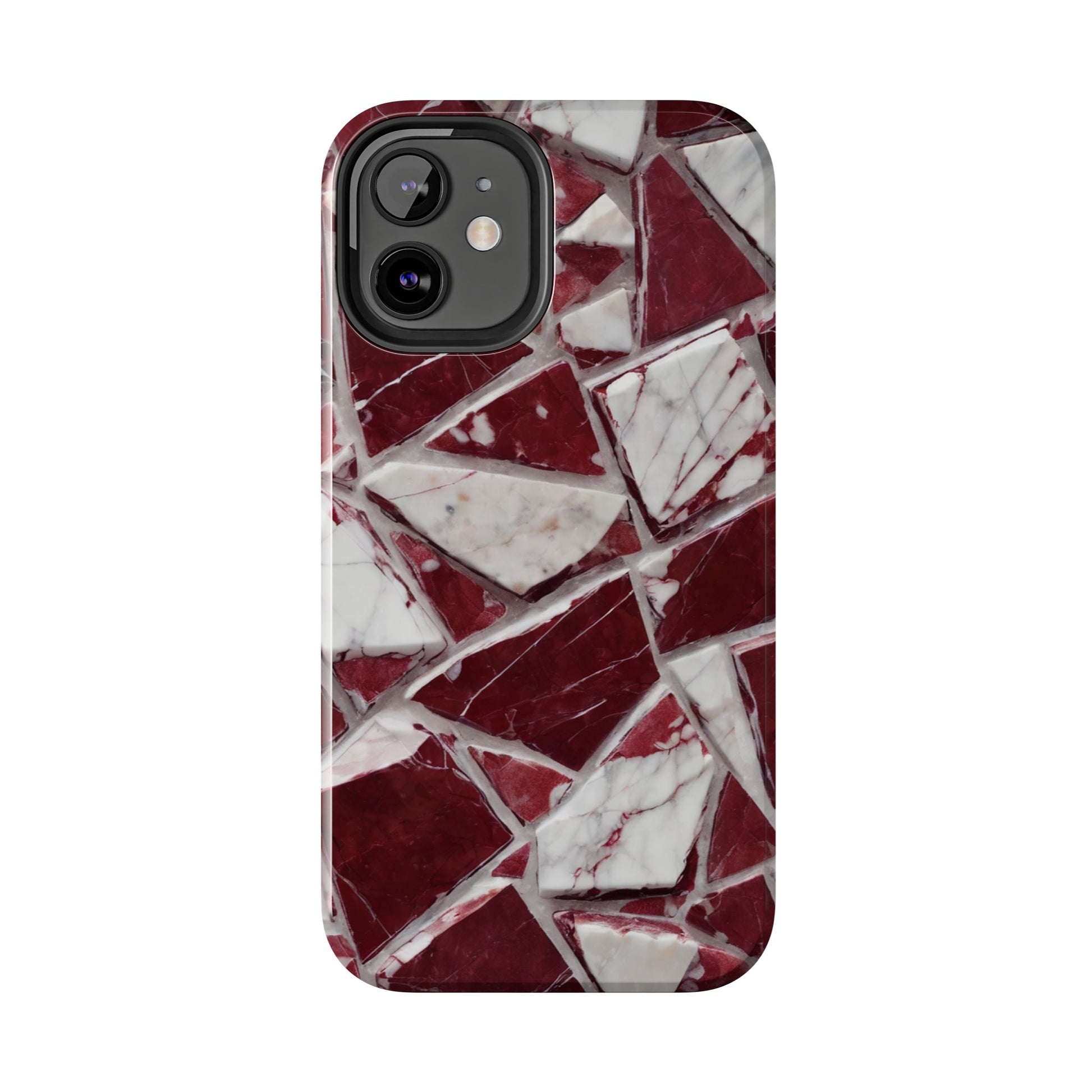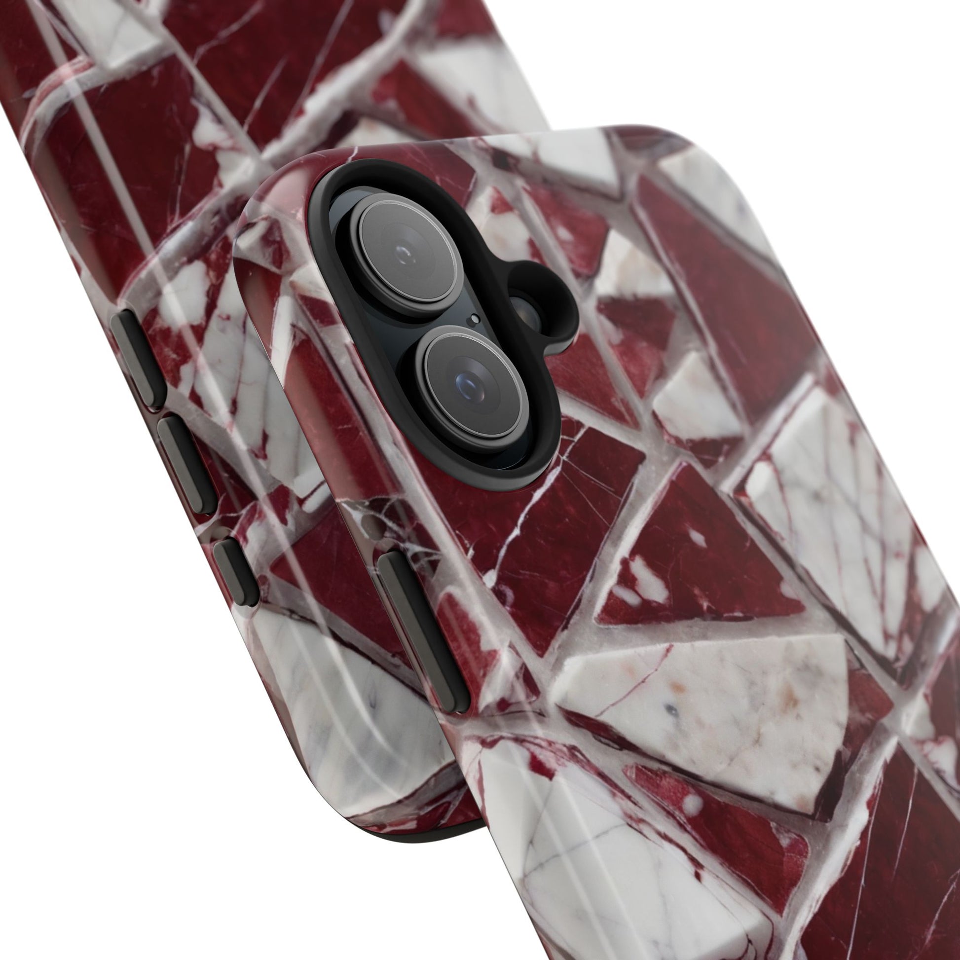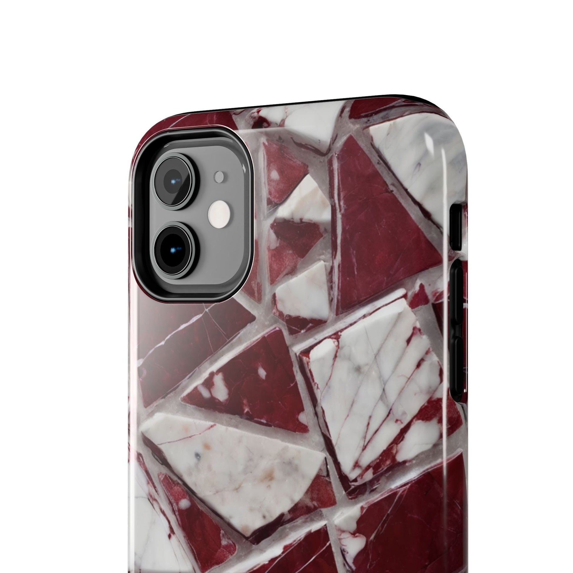 Elegant Red Pieces Marble Pattern Tough Phone Case - Stylish Protection for iPhone