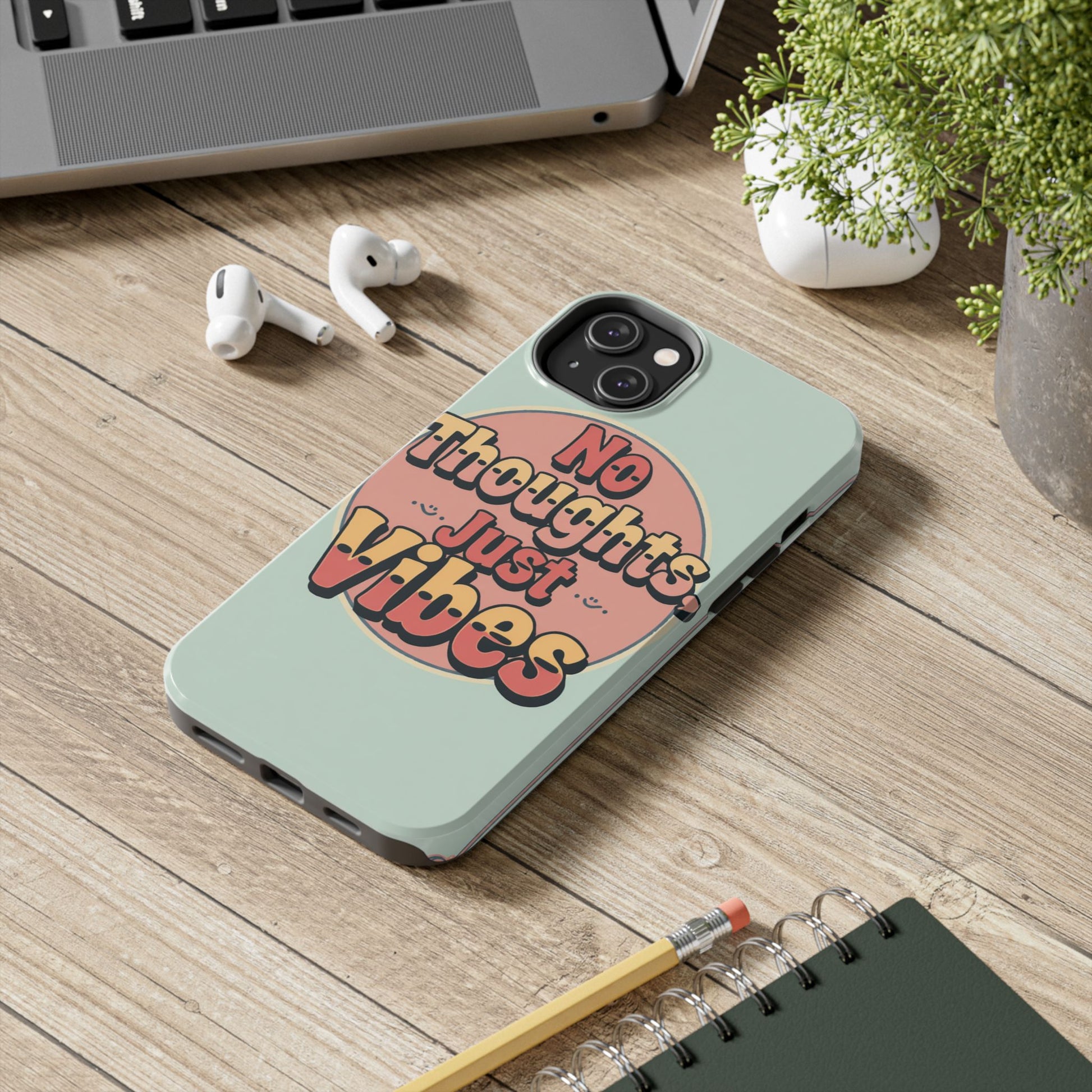No Thoughts Just Vibes Phone Case - Fun Tough Phone Cover for Positive Energy