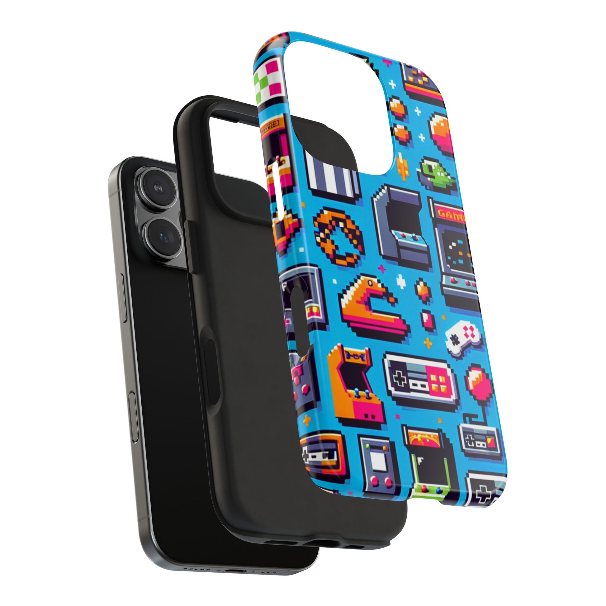 Introducing our vibrant Tough Phone Cases, designed for the gamers and nostalgia enthusiasts in your life. This phone case features a playful, retro video game design that brings a sense of fun and flair to your everyday tech. Perfect for daily use, it allows you to express your personality while keeping your phone safe from bumps and scratches. Ideal for birthdays, holidays, or as a treat for yourself, this case is perfect for anyone who loves gaming or retro aesthetics. Gift it to friends, loved ones, or keep it for yourself—you'll feel the joy of childhood every time you reach for your phone!