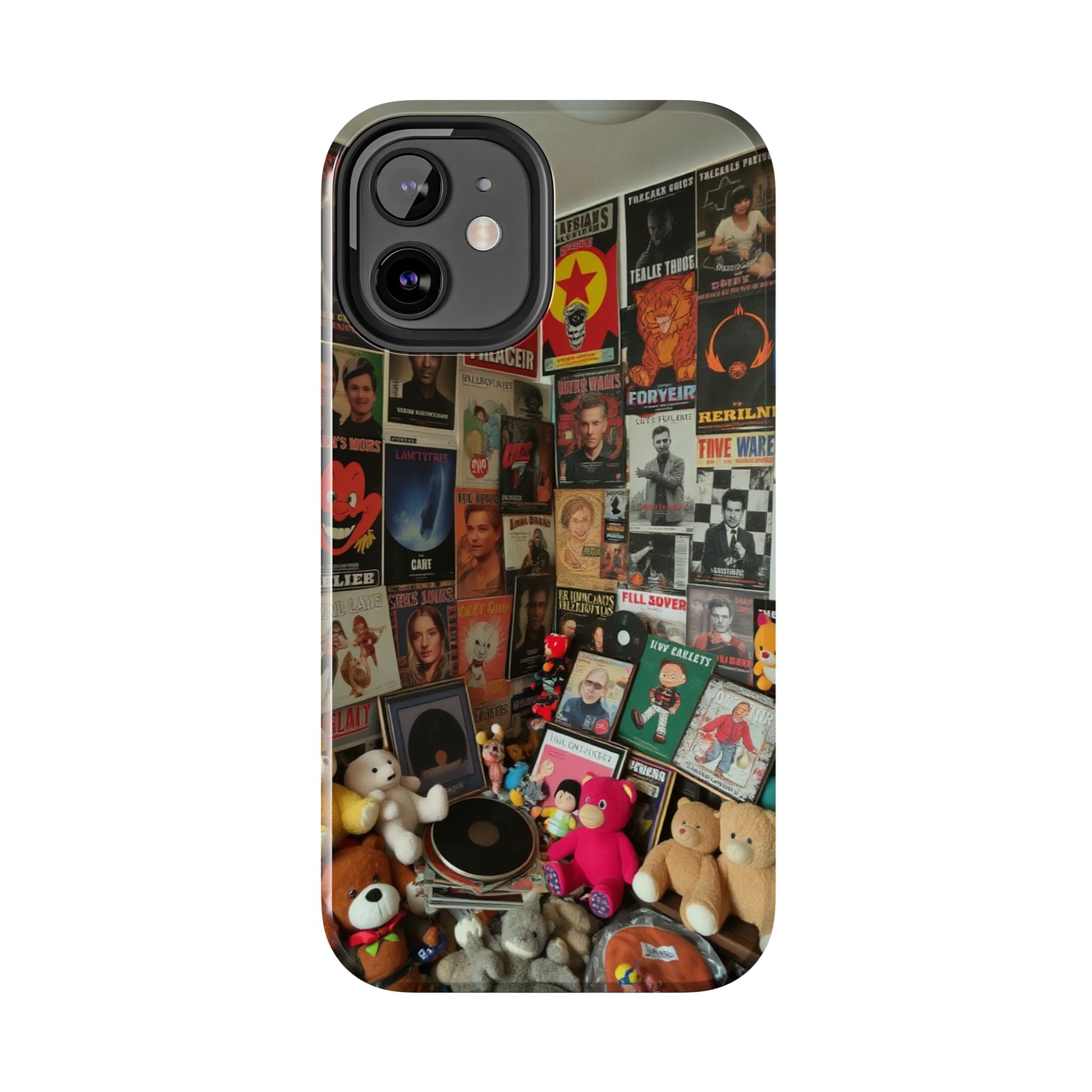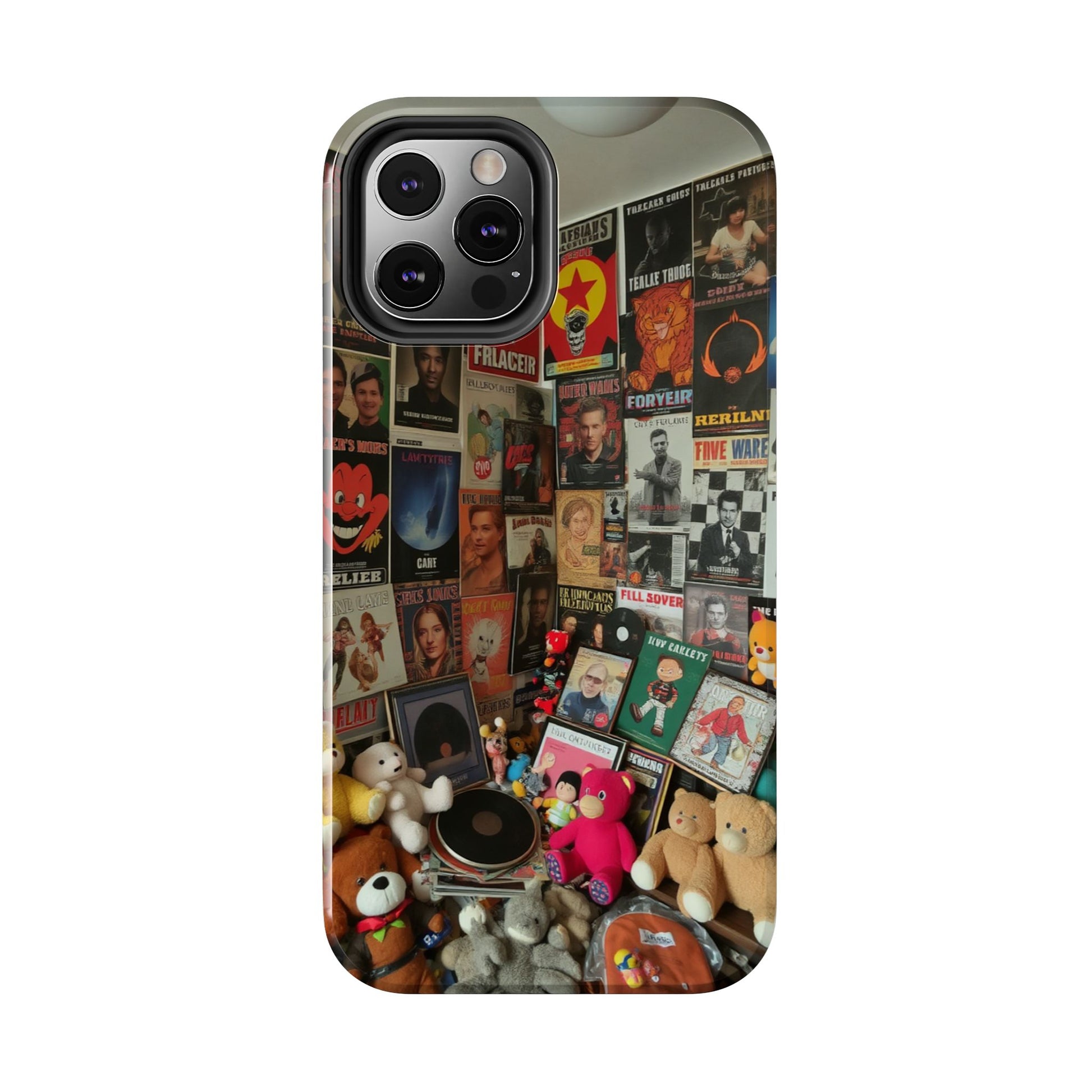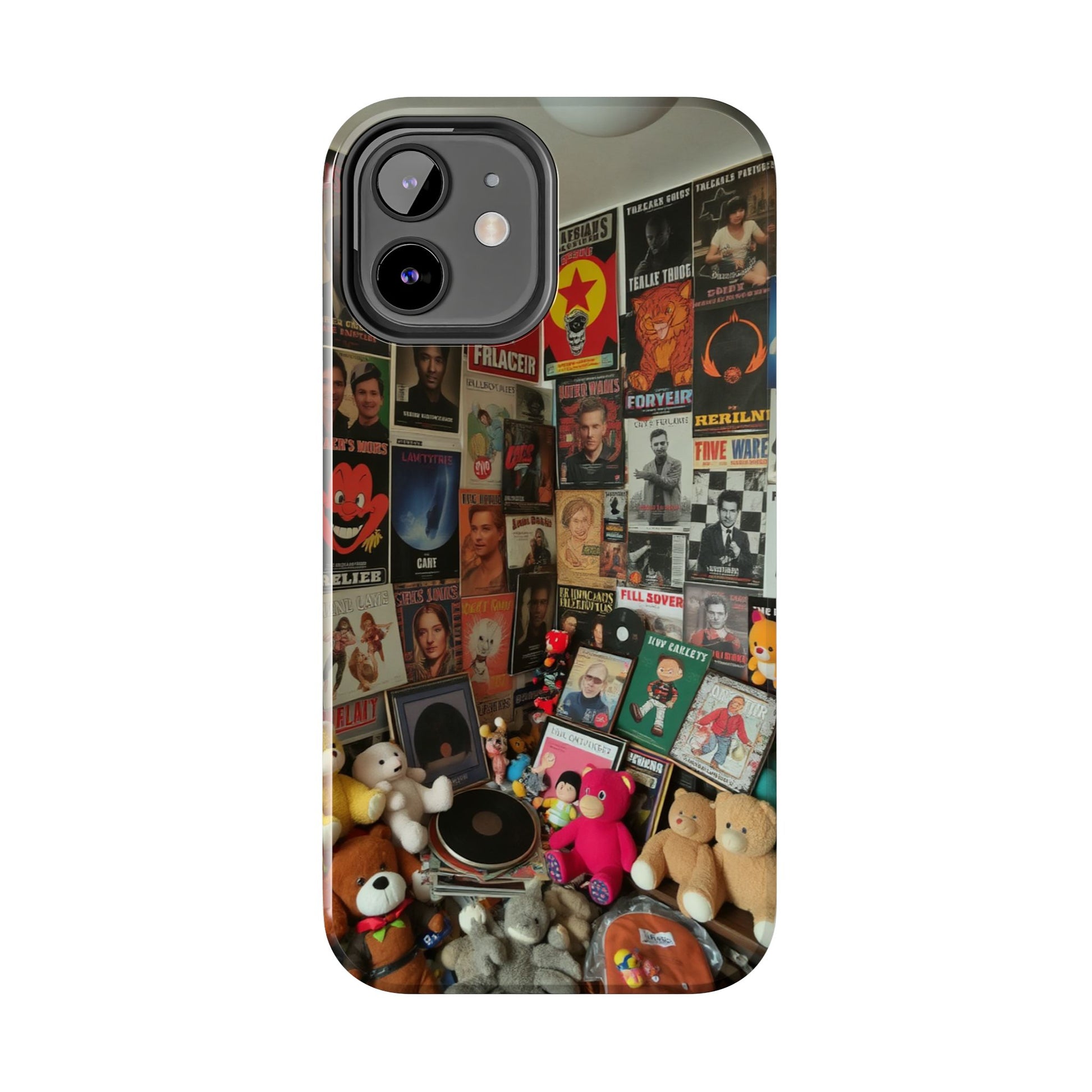 Retro Vibe Tough Phone Case - Vintage Movie Posters & Plush Toys Design