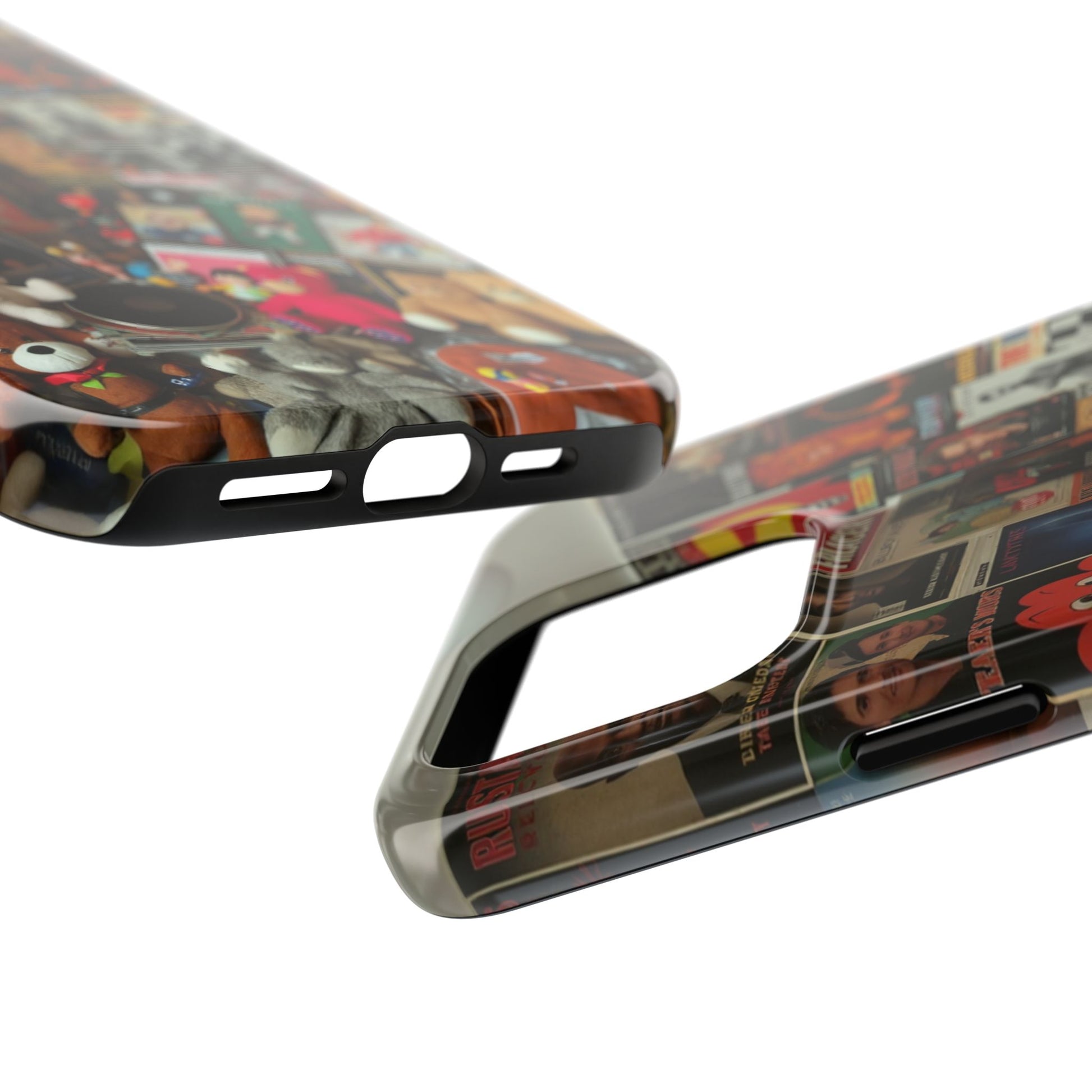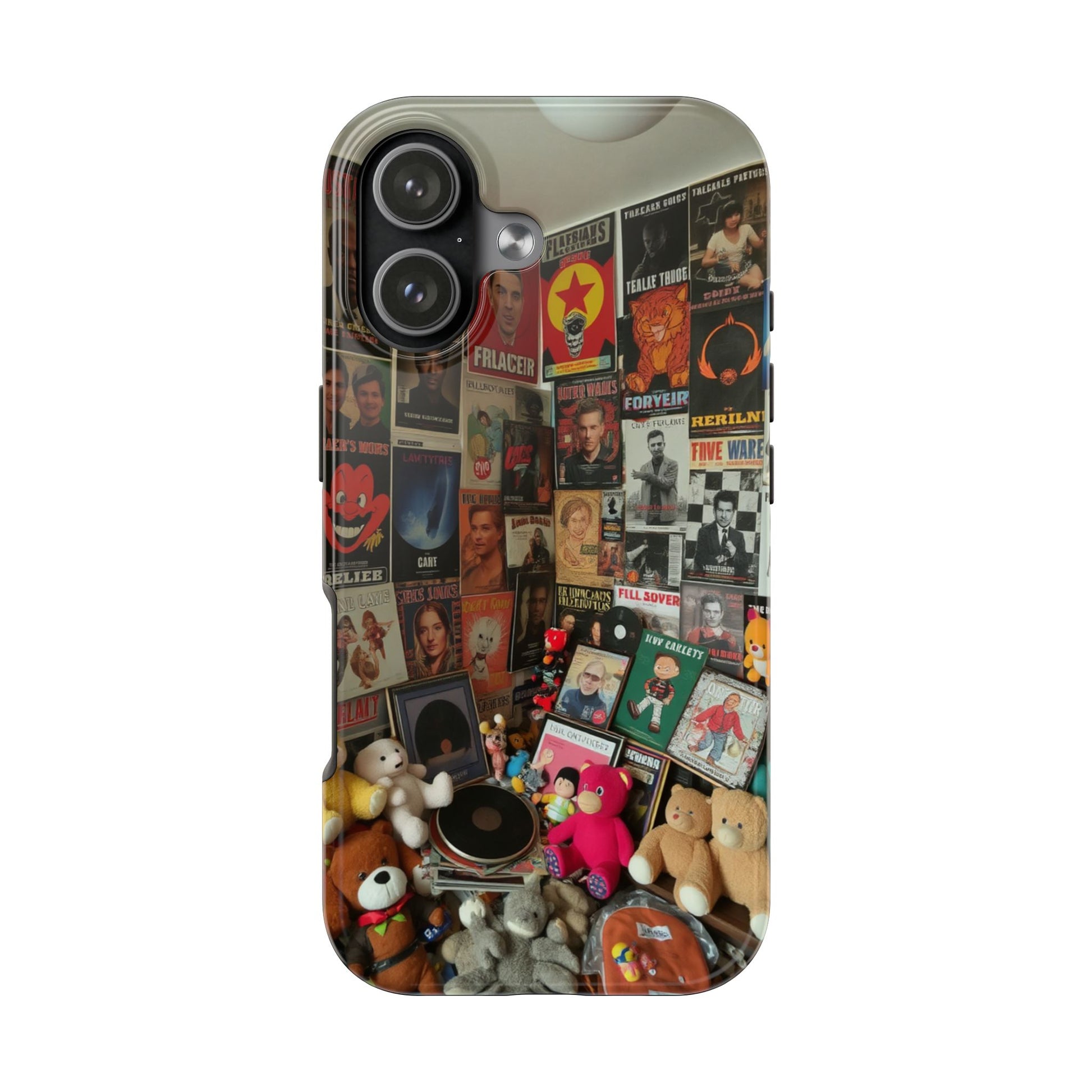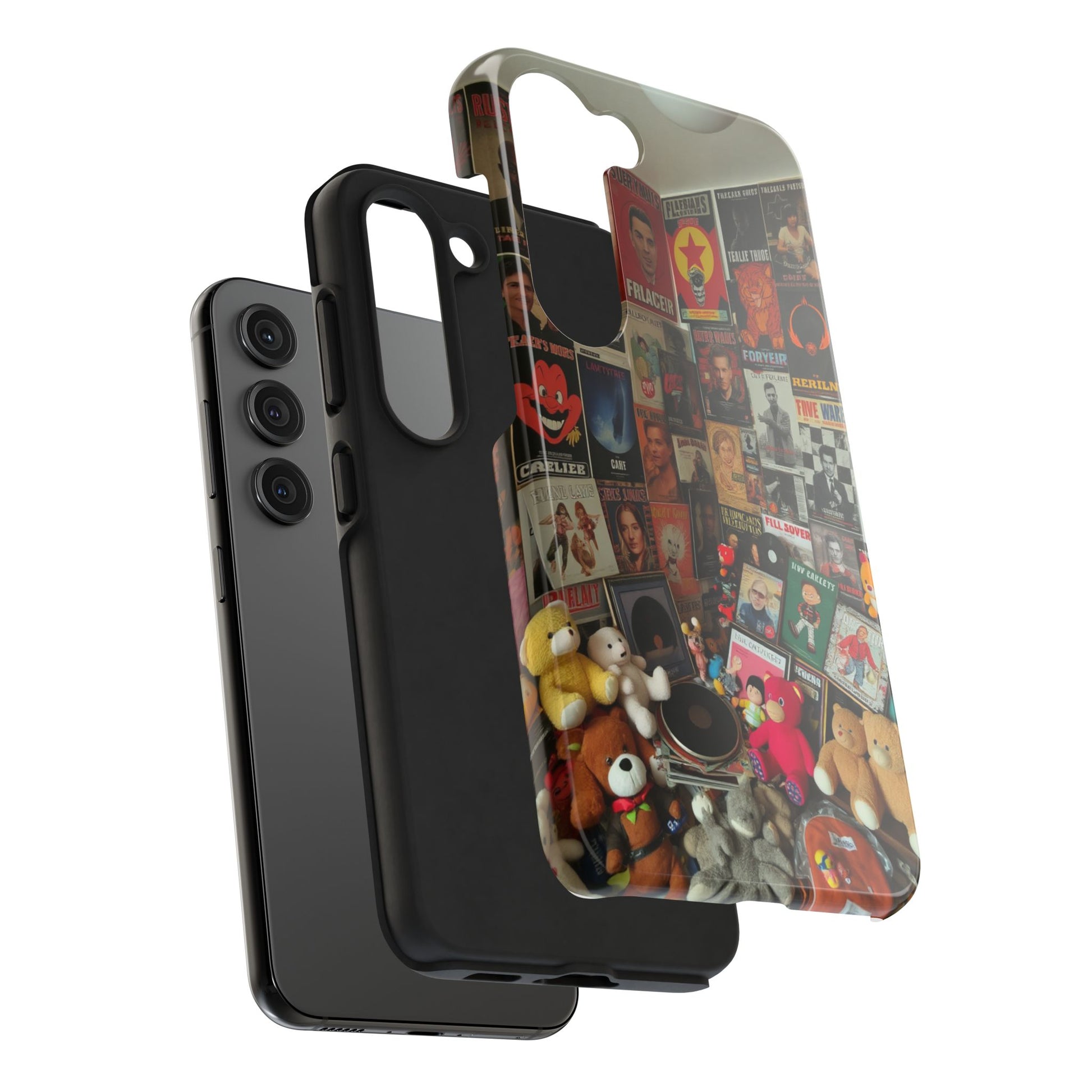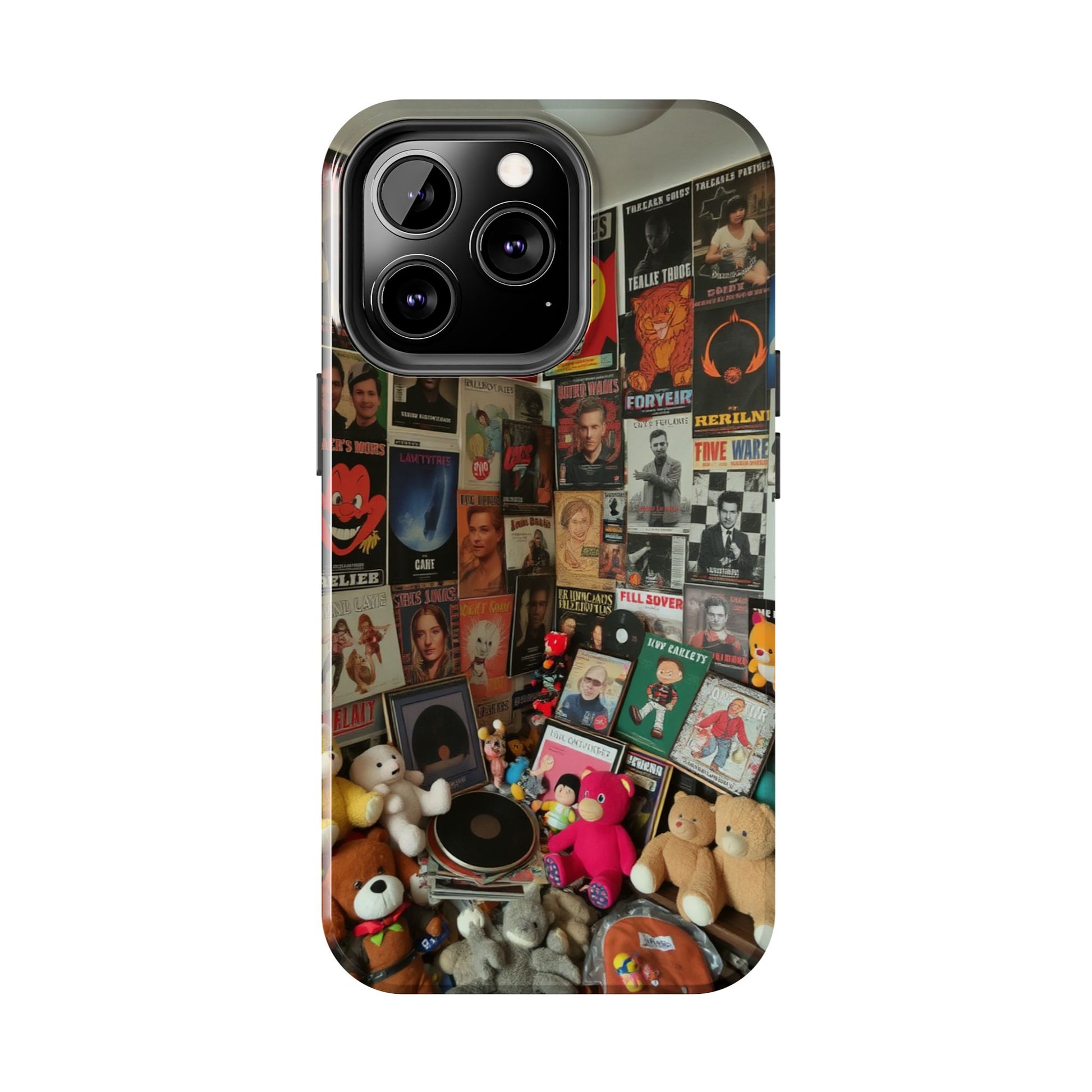 Retro Vibe Tough Phone Case - Vintage Movie Posters & Plush Toys Design