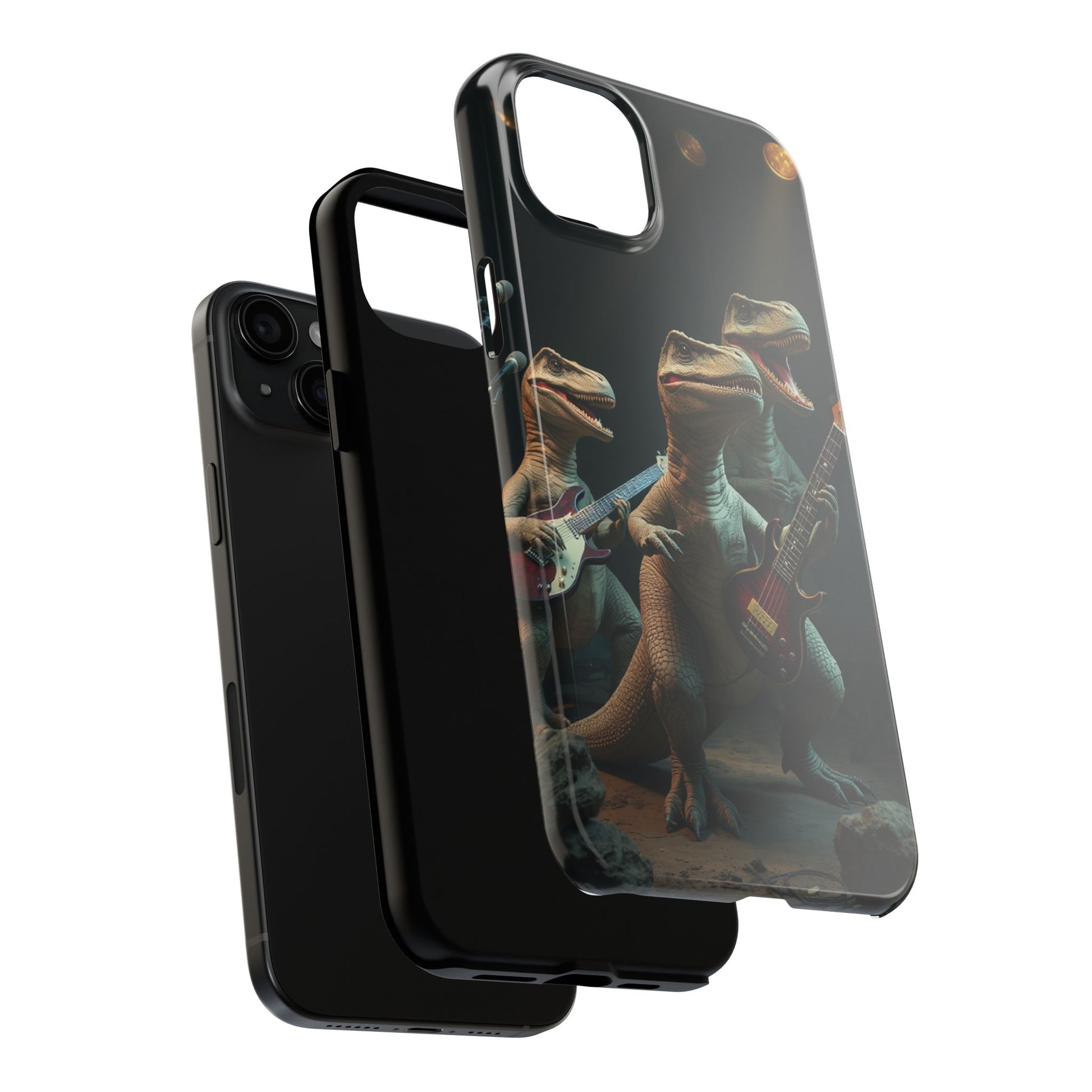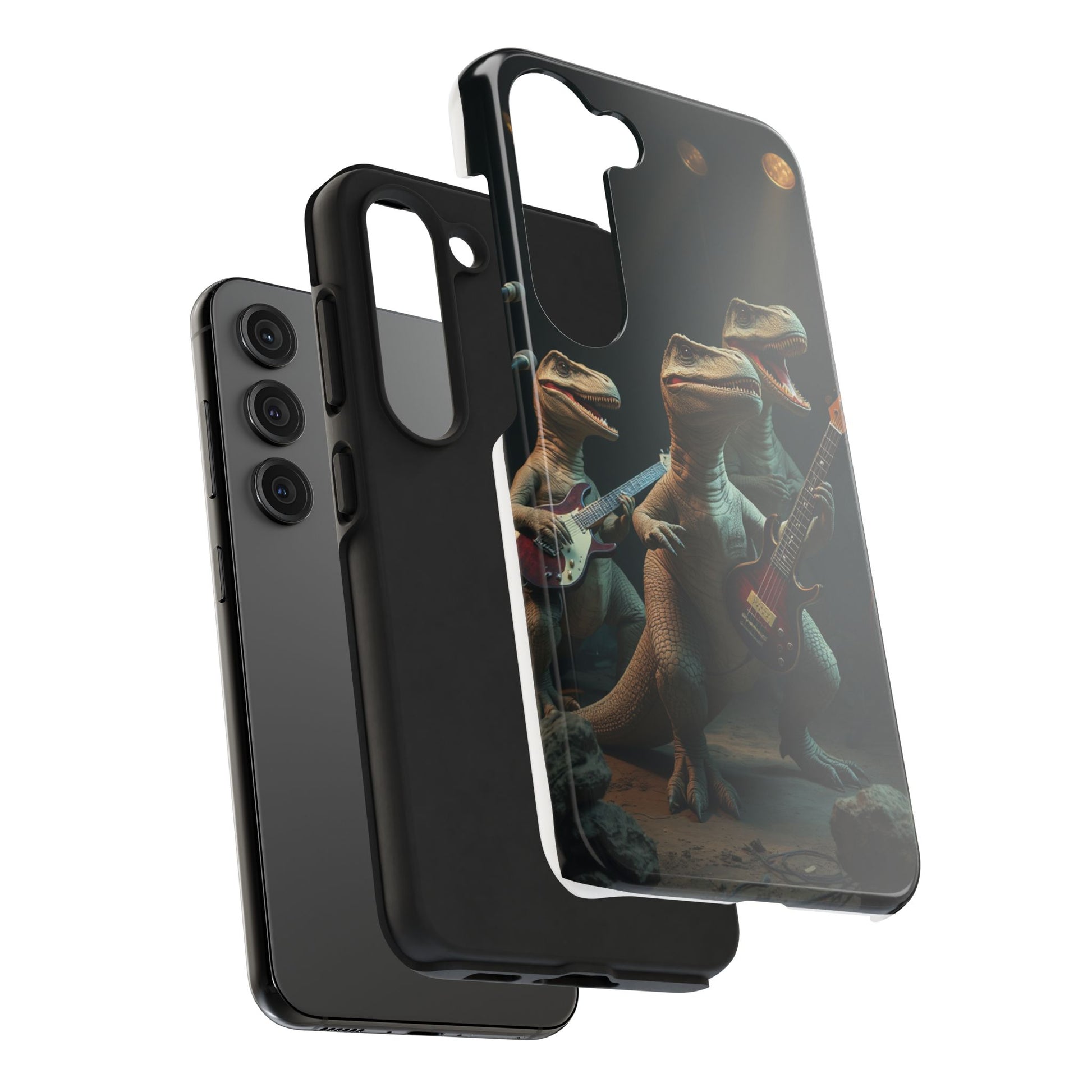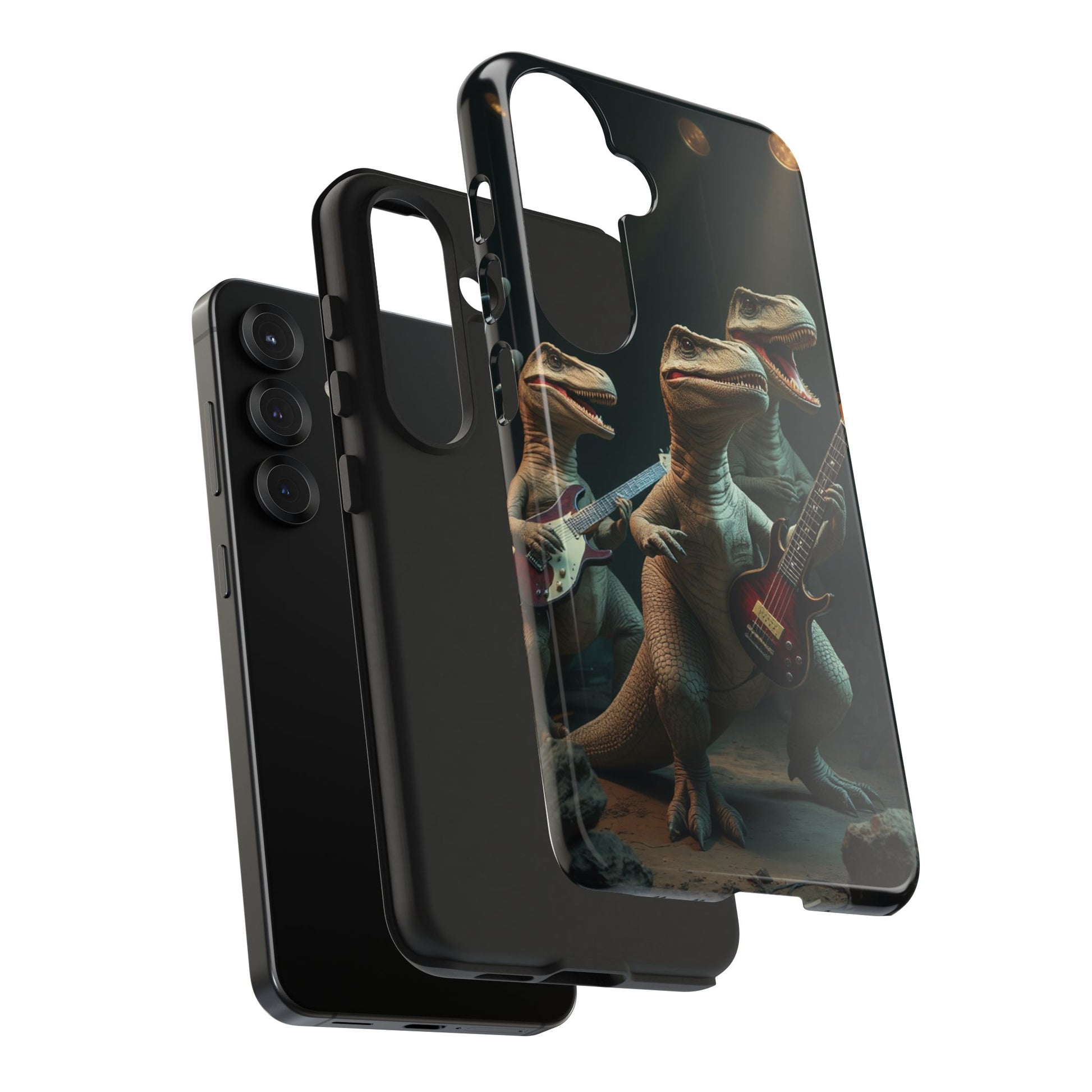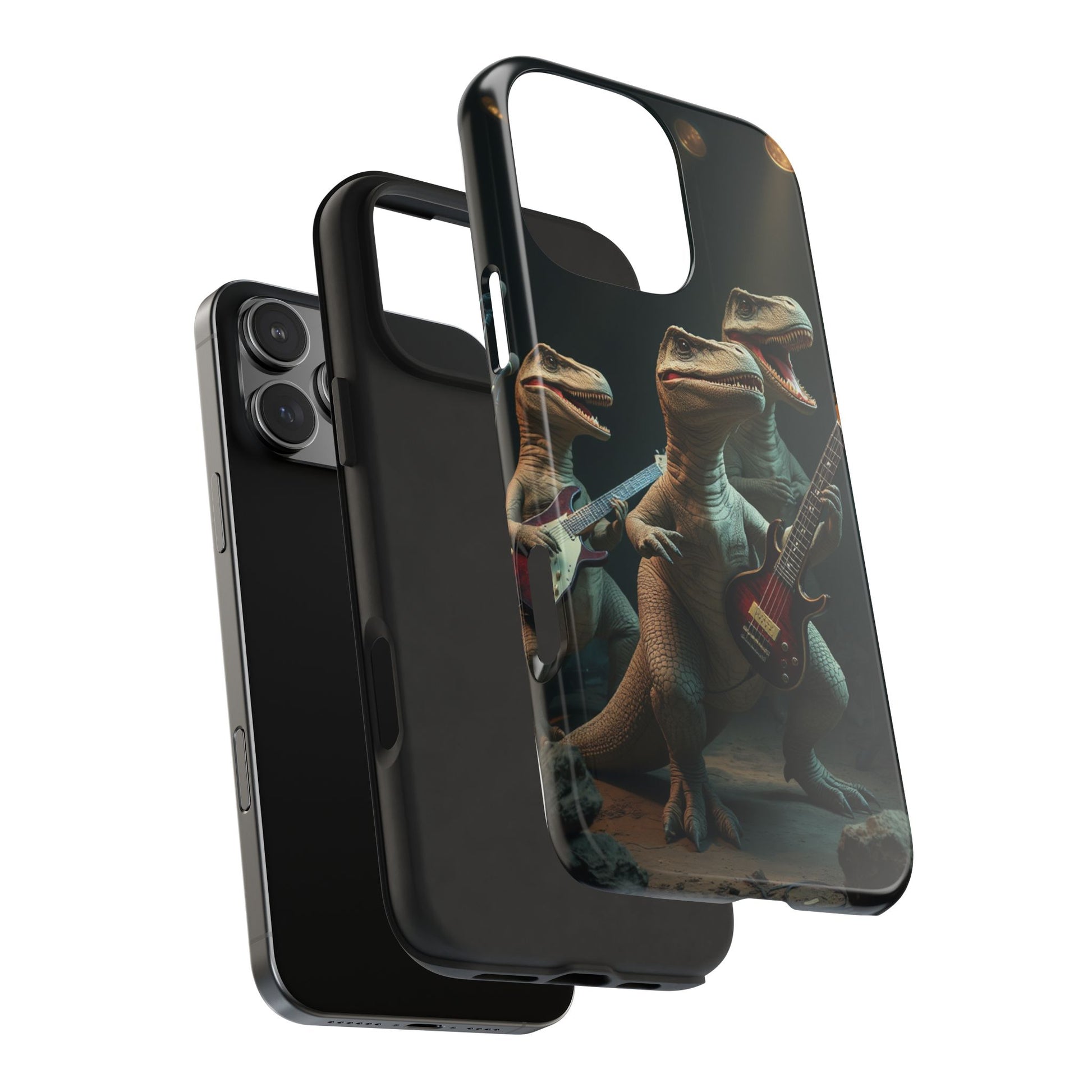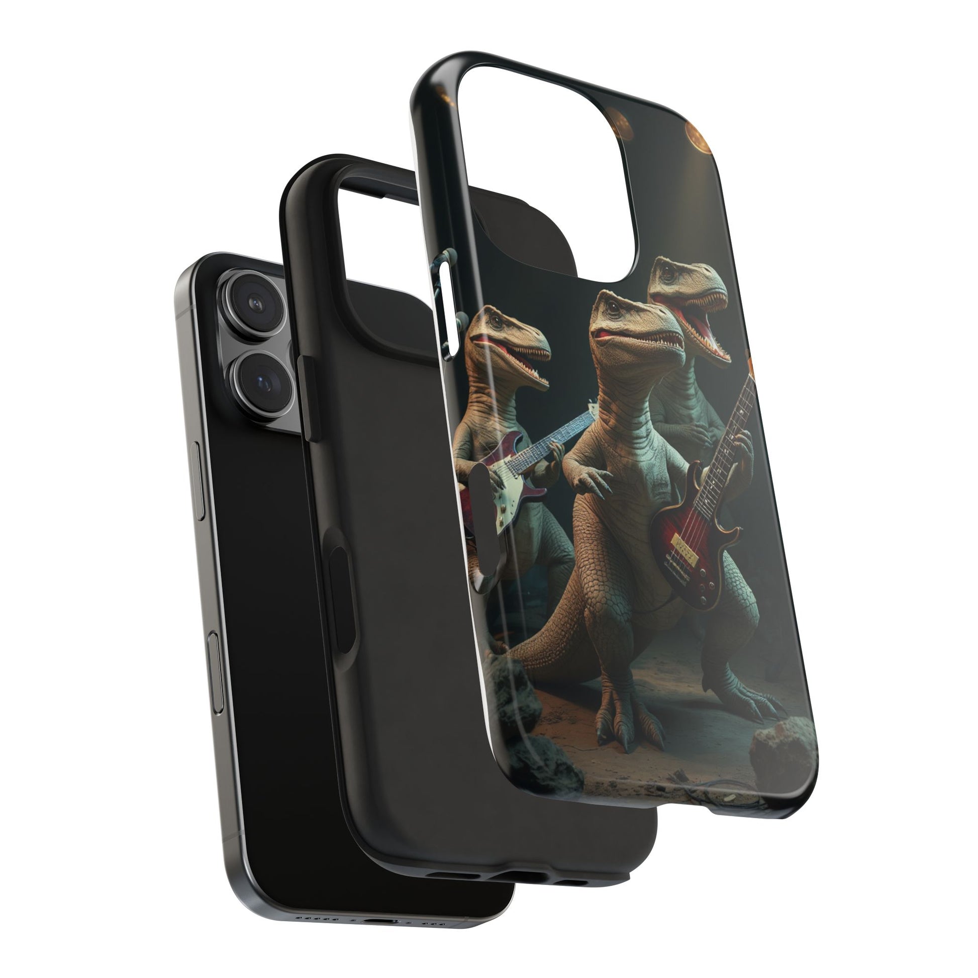 Introducing our vibrant Tough Phone Case, designed for those who love to stand out. This case features a unique and playful dinosaur rock band design, bringing a fun and energetic vibe to your everyday life. Ideal for music lovers, dinosaur enthusiasts, and anyone who appreciates a touch of whimsy. Perfect as a gift for birthdays, holidays, or just to treat yourself. This case not only protects your phone but also showcases your personality, making it a conversation starter wherever you go. Grab yours to add a splash of creativity and character to your phone!