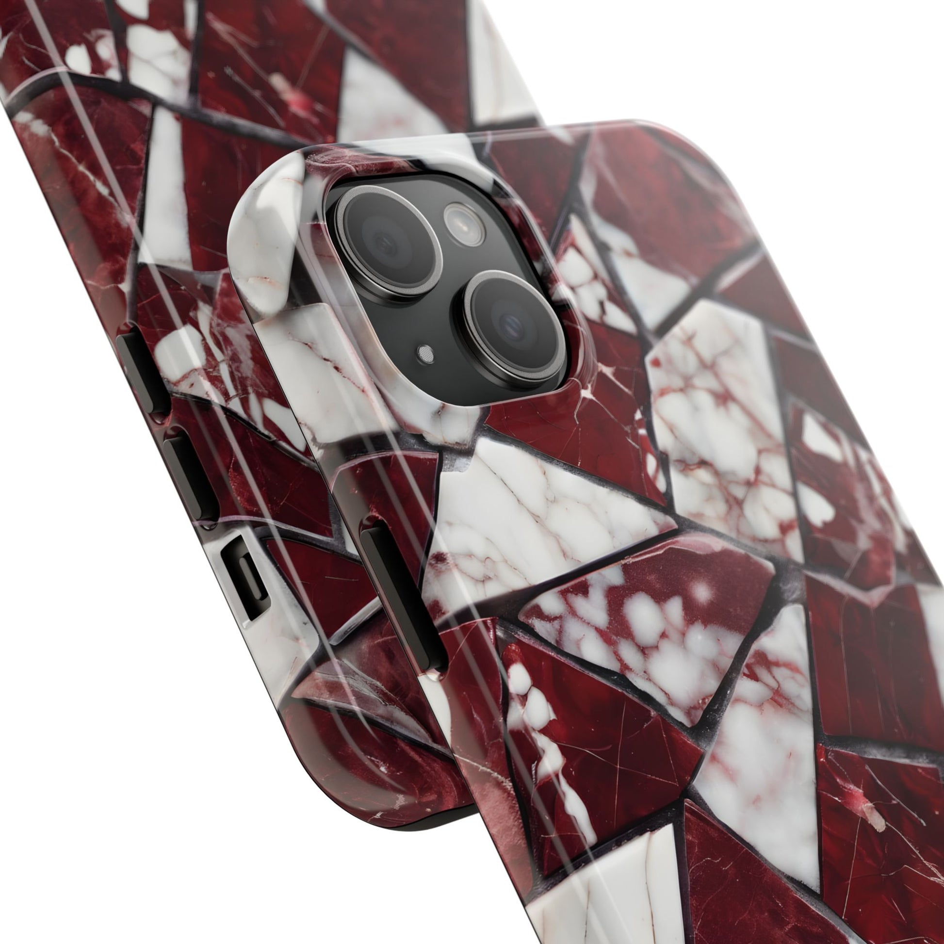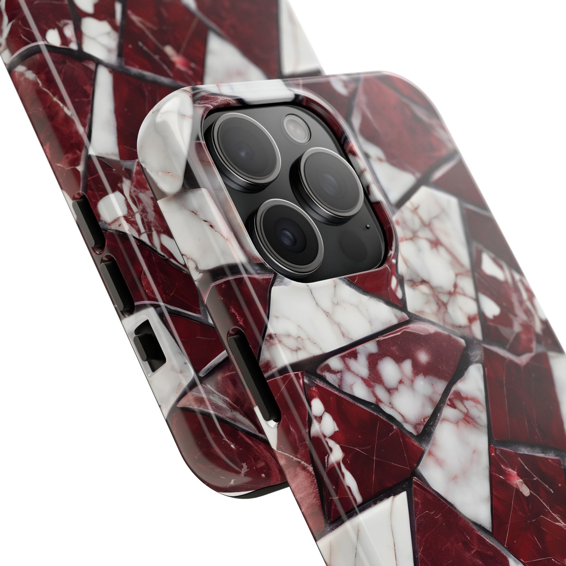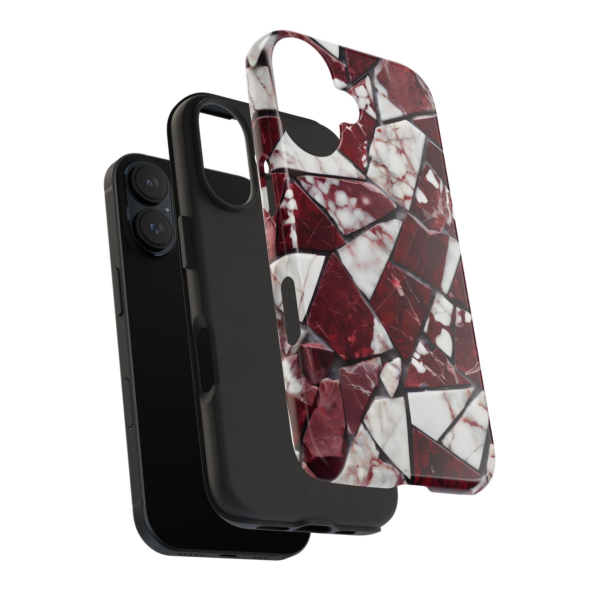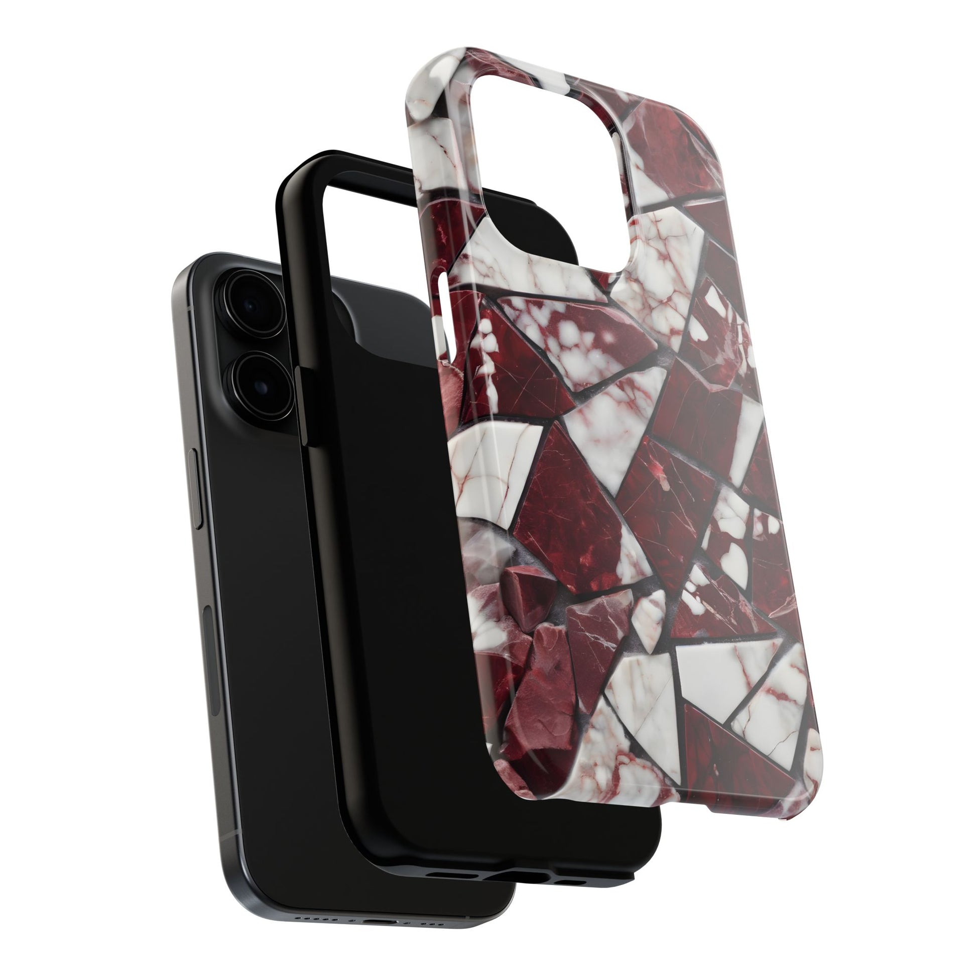 Shattered Dark Red Marble Pattern Tough Phone Case - Durable & Stylish Protection for iPhone