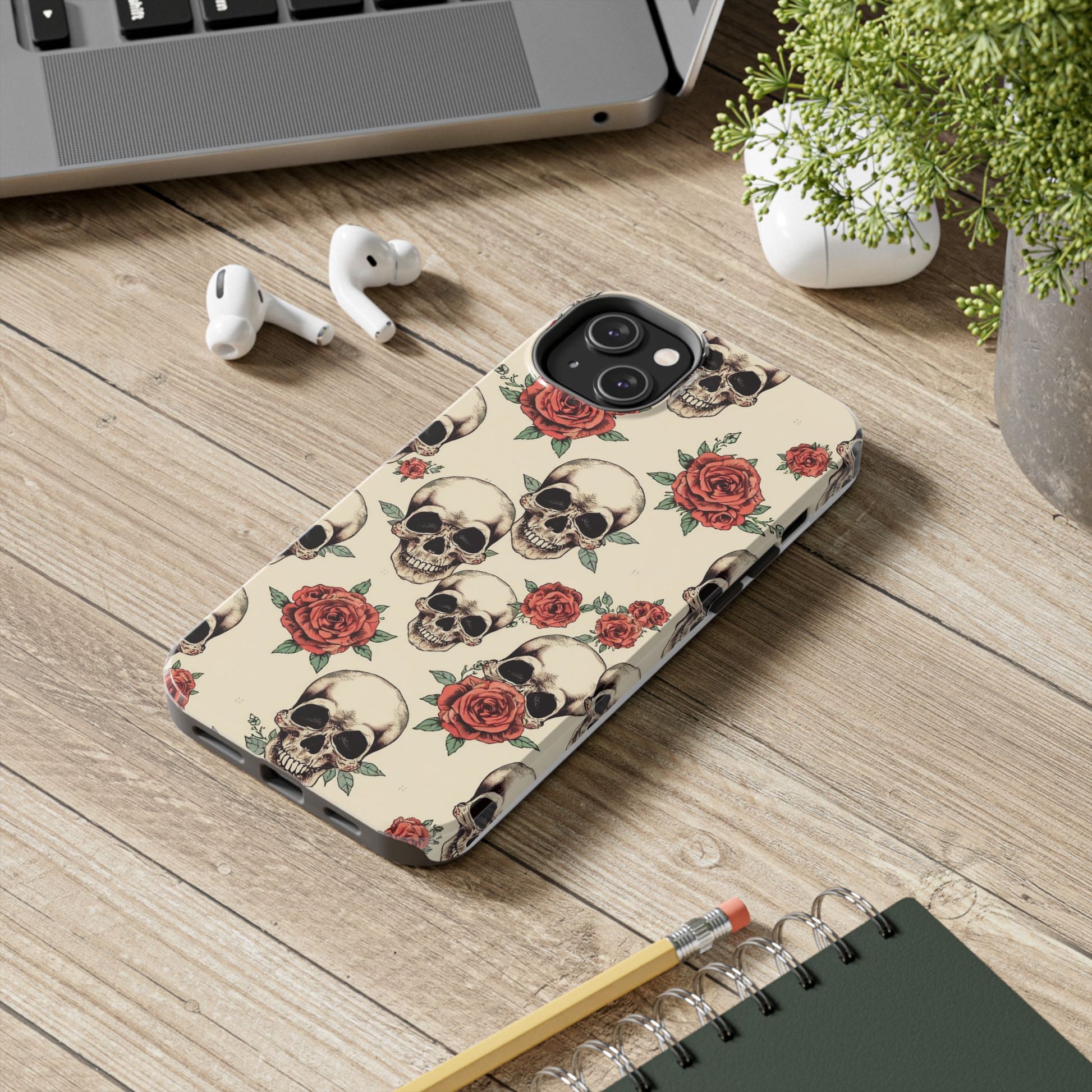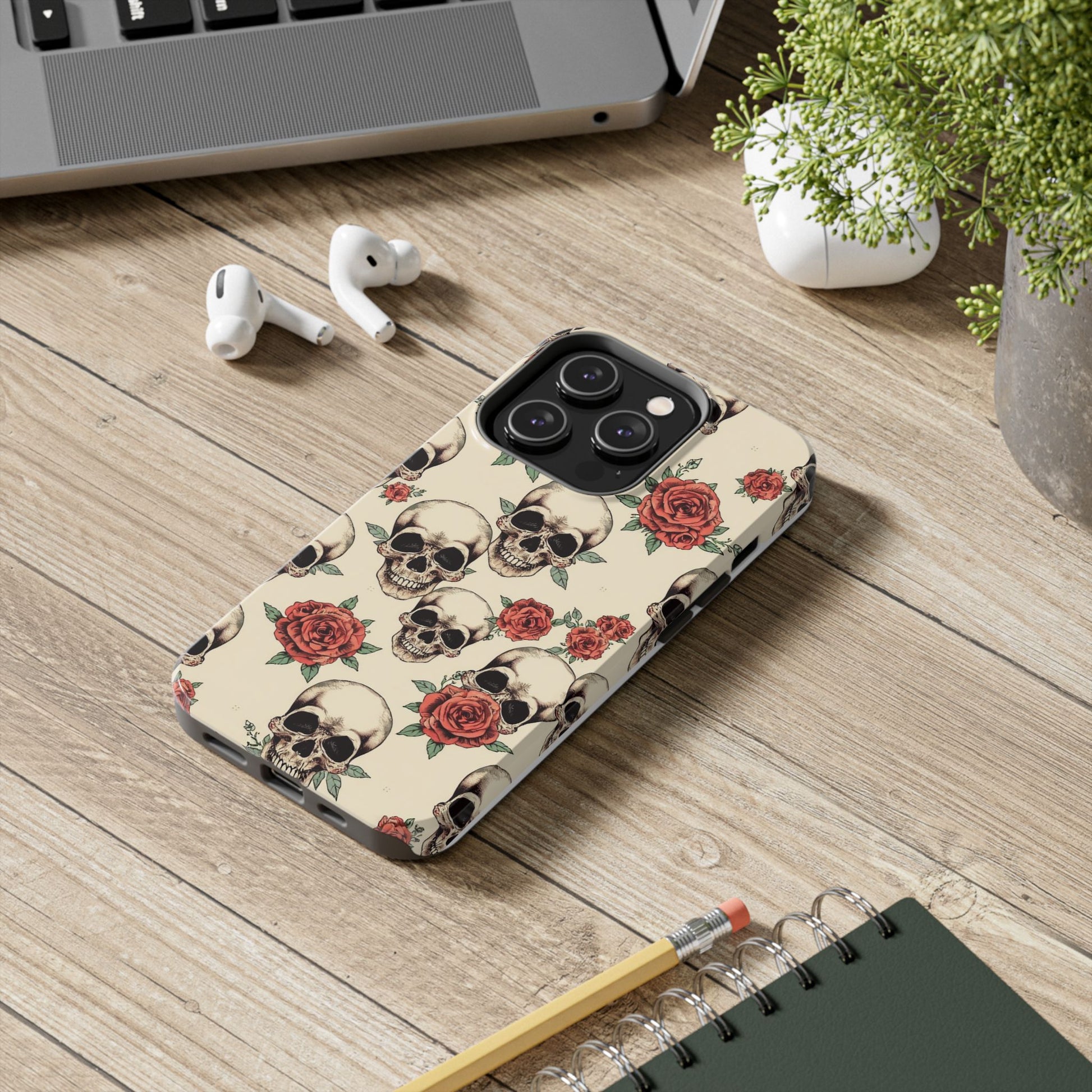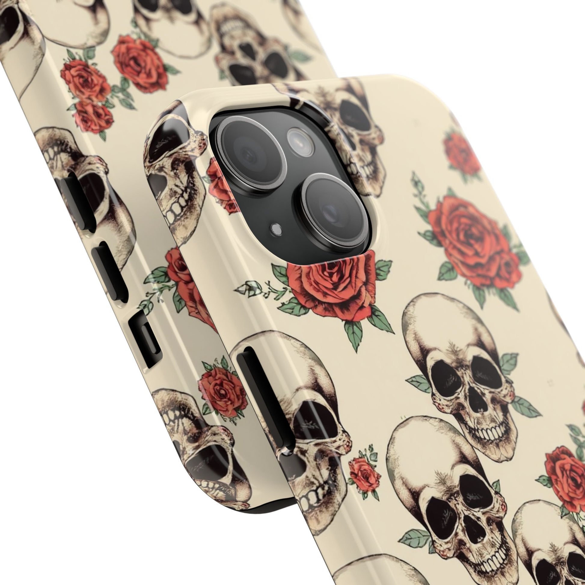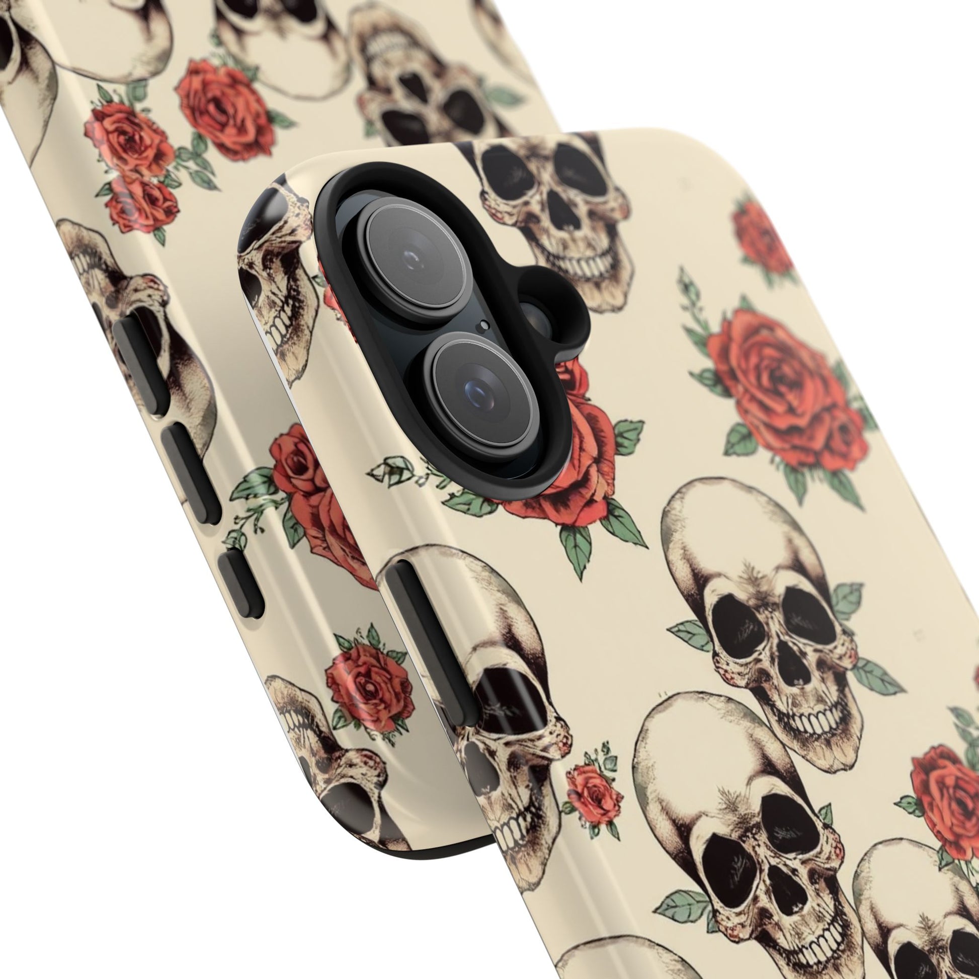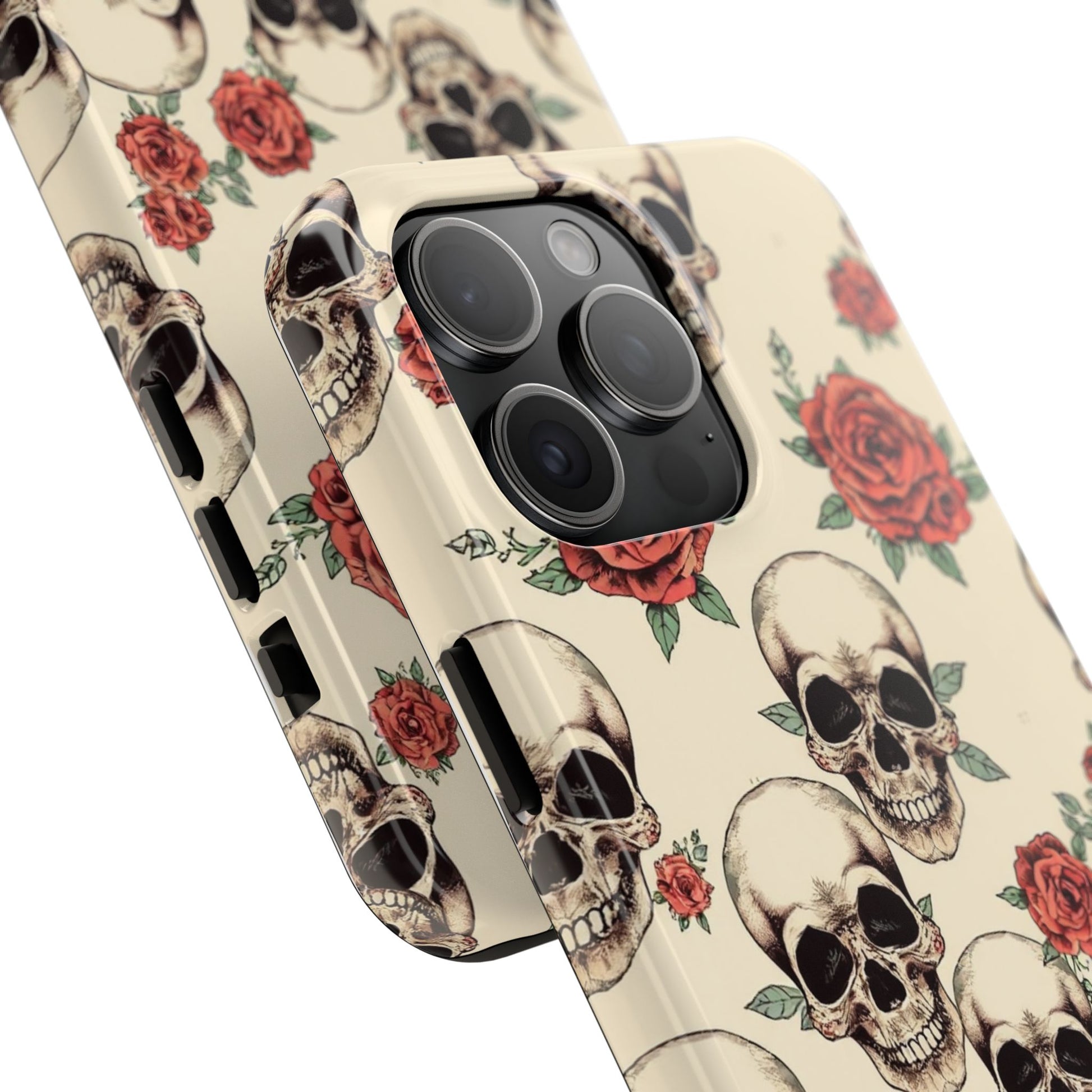 Tough Phone Case with Skull and Rose Design - Edgy Floral iPhone Protection