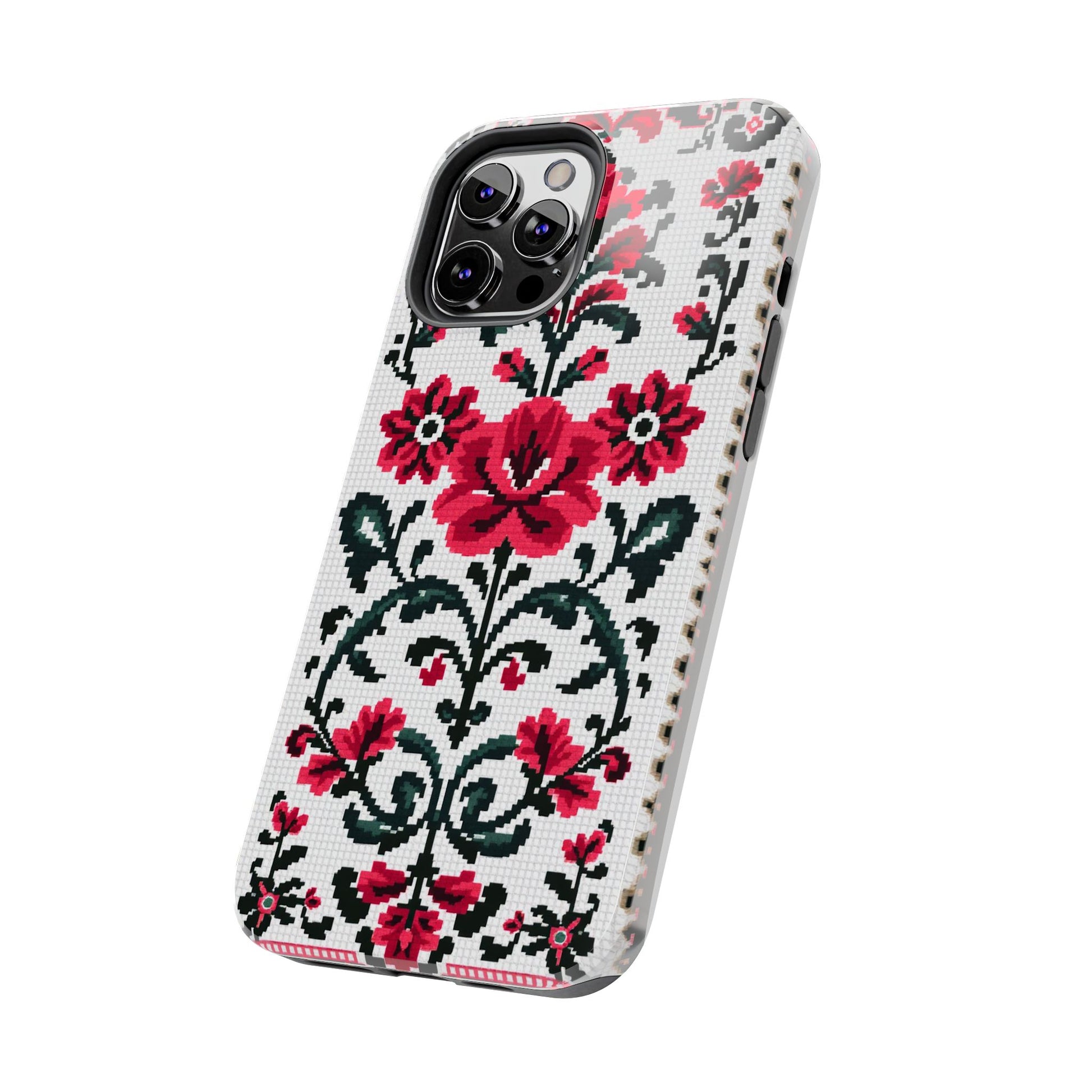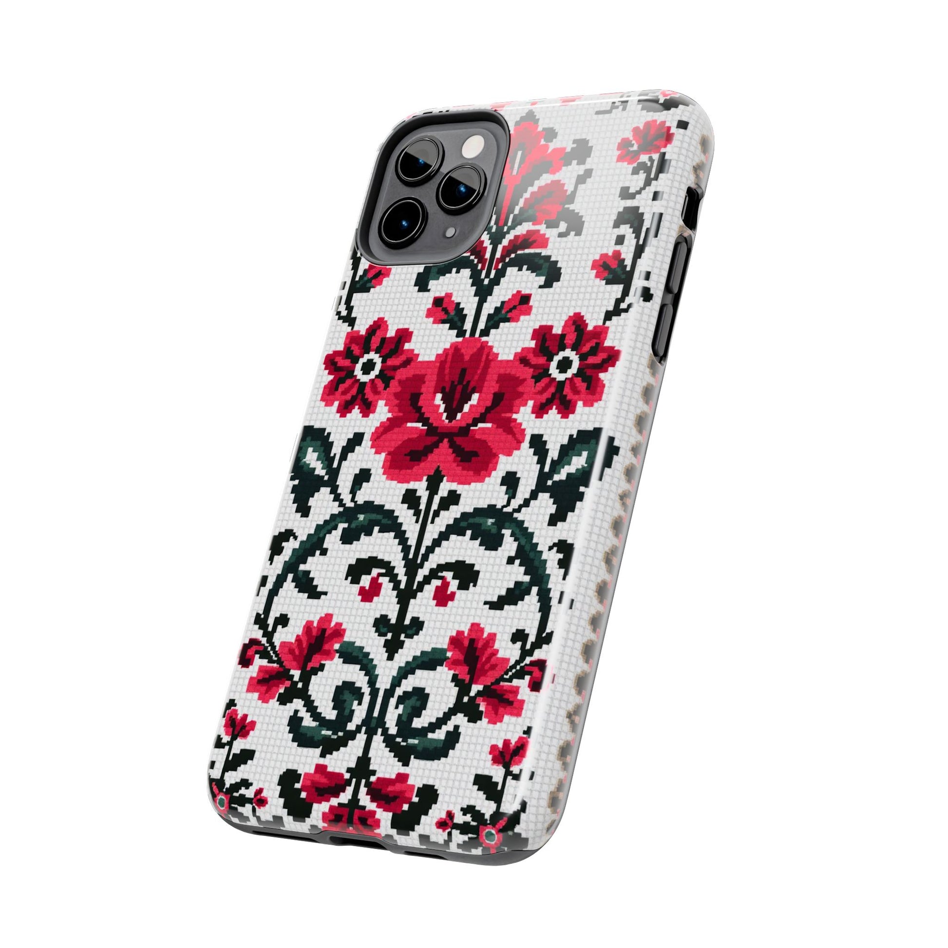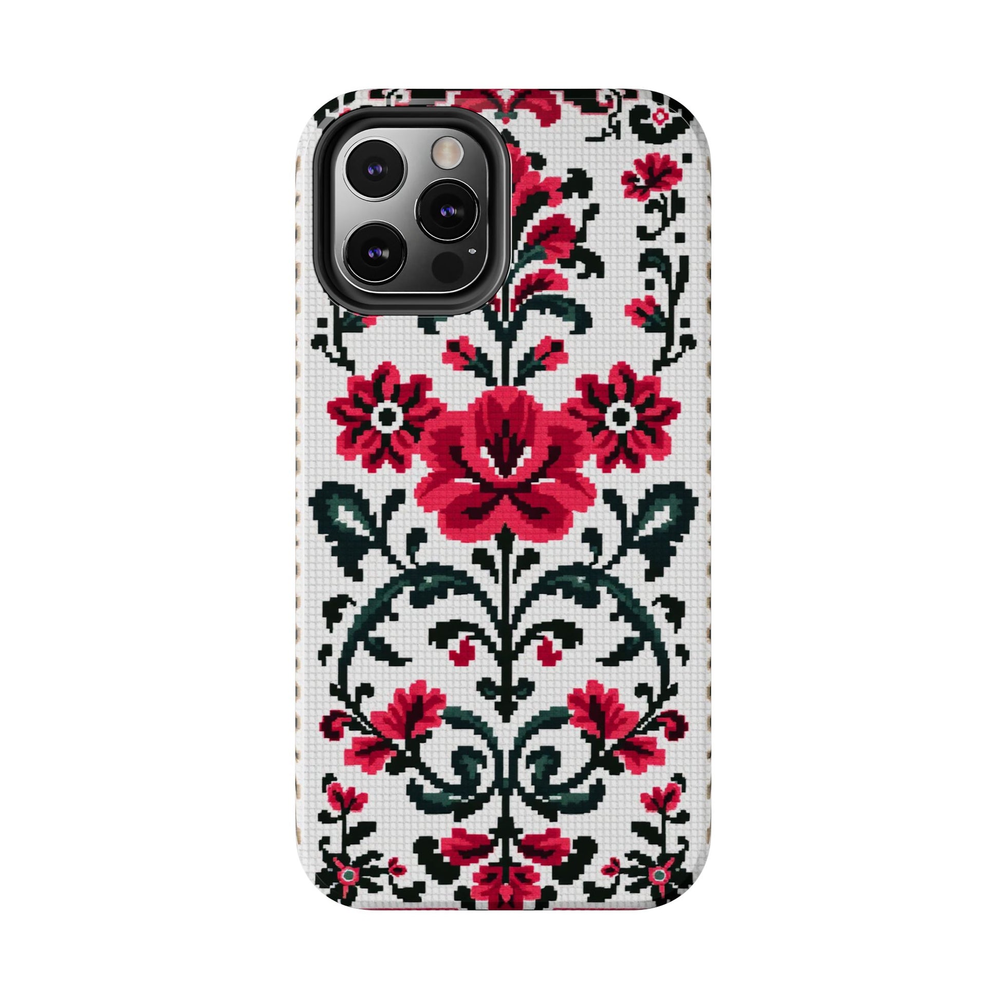 Traditional Floral Knit Tough Phone Cases - Durable Protection with Vintage Style - for iPhone