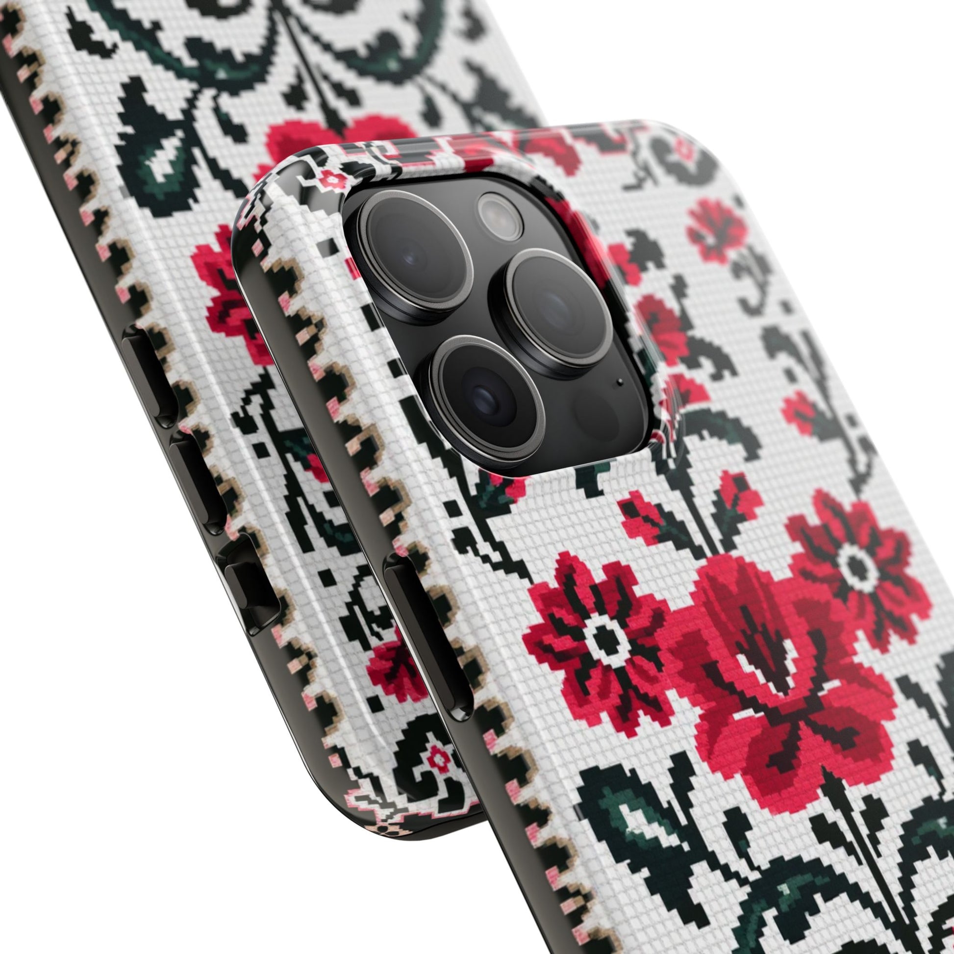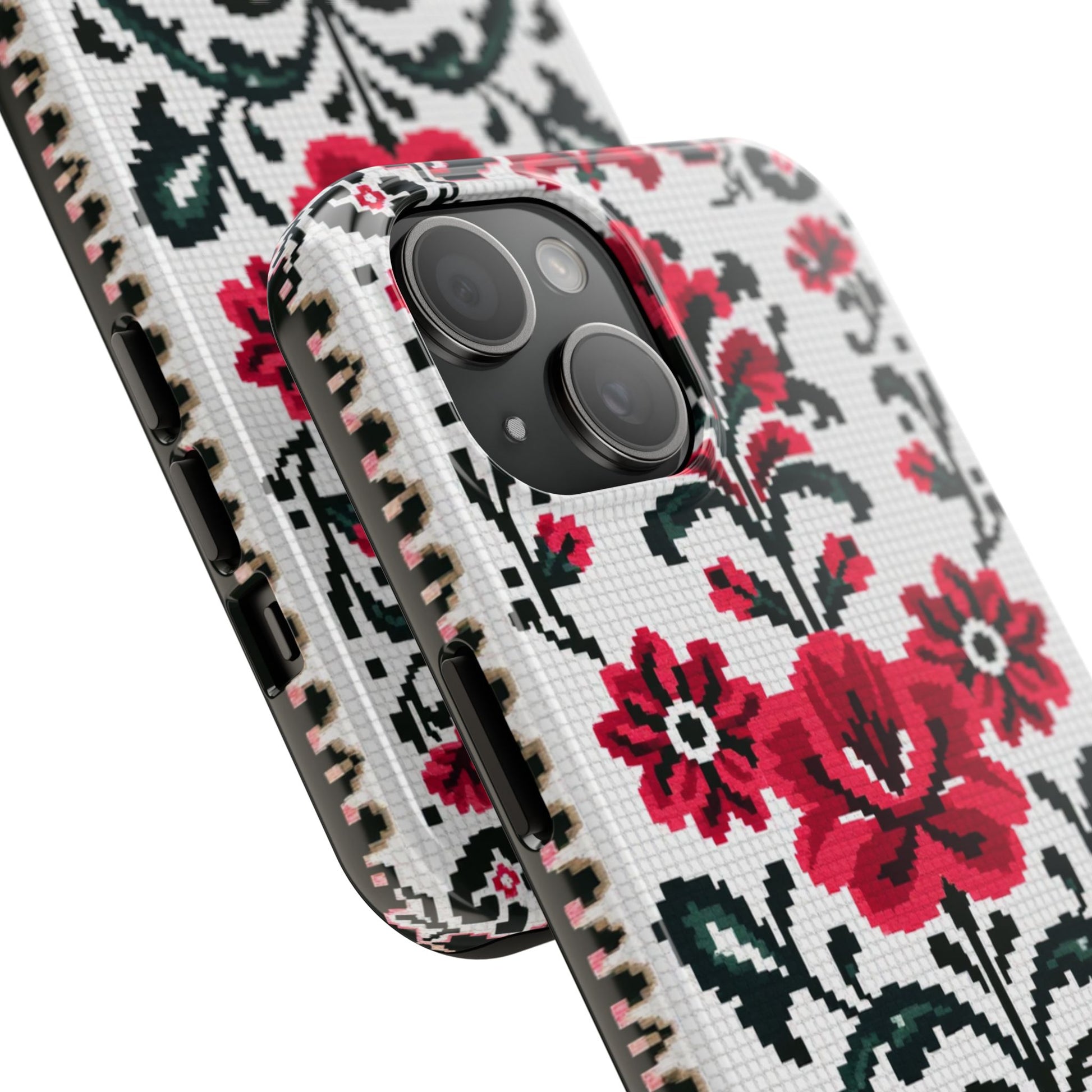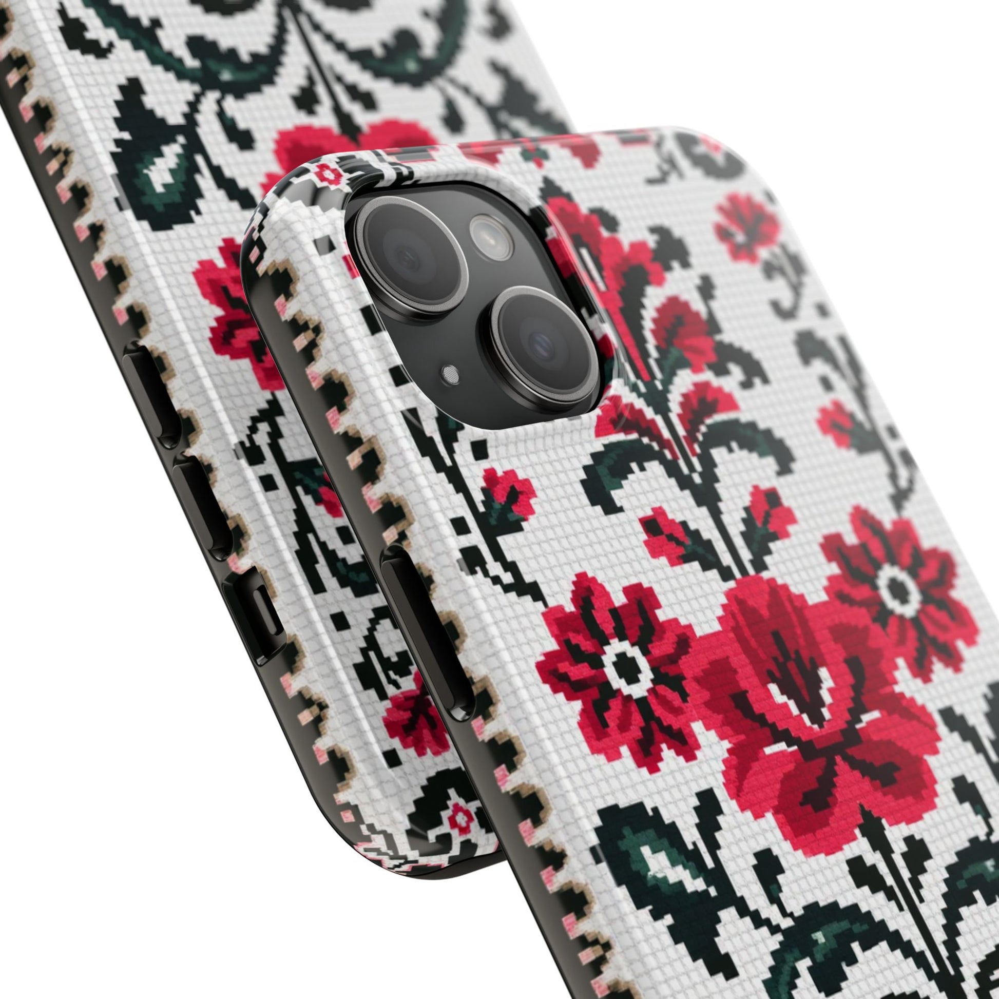 Traditional Floral Knit Tough Phone Cases - Durable Protection with Vintage Style - for iPhone